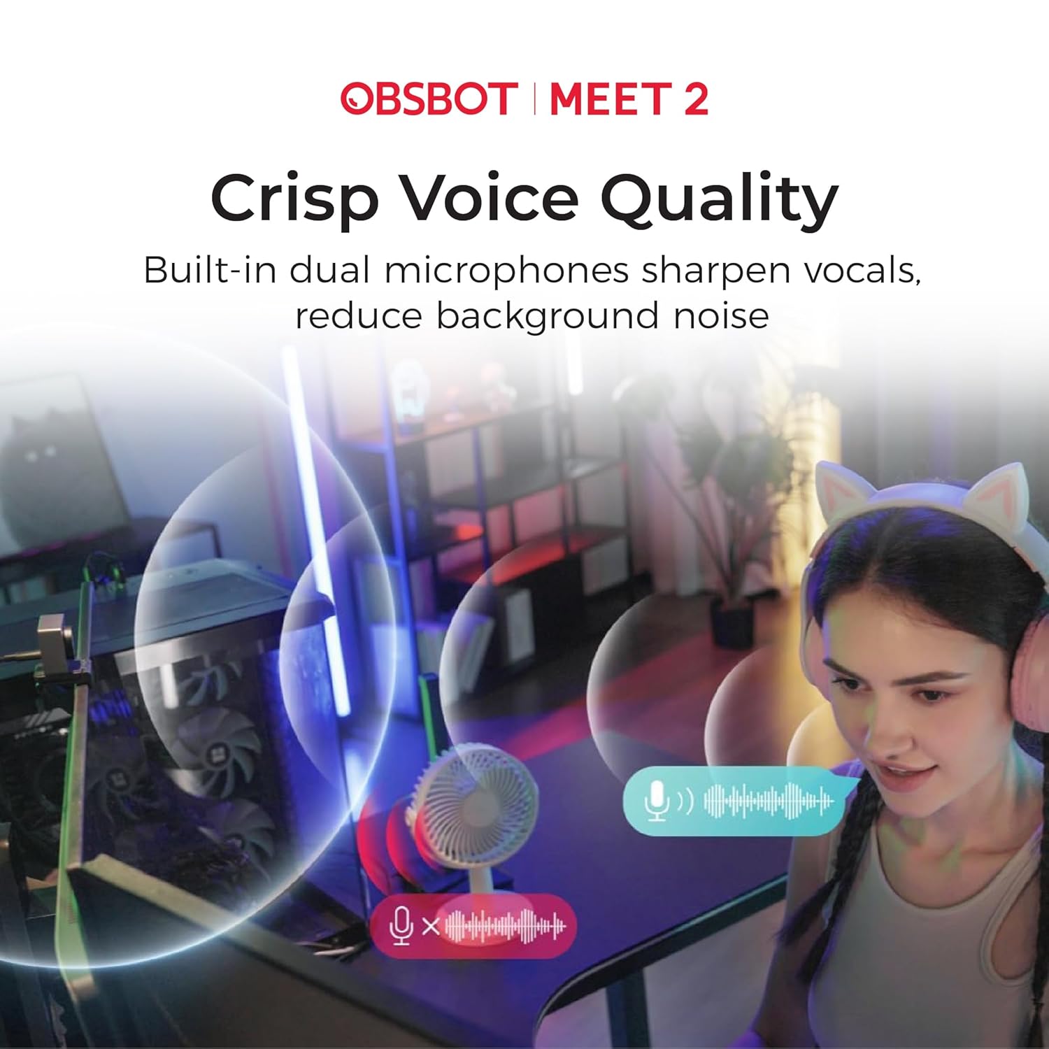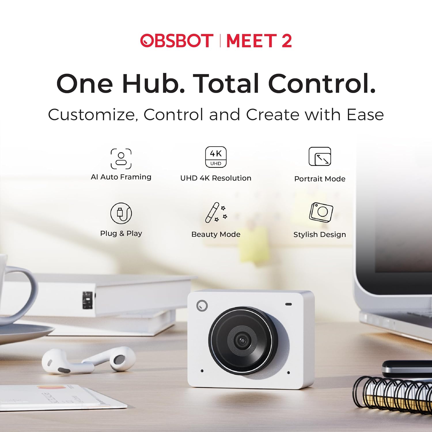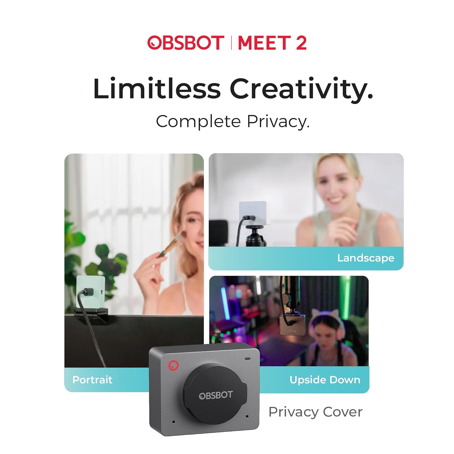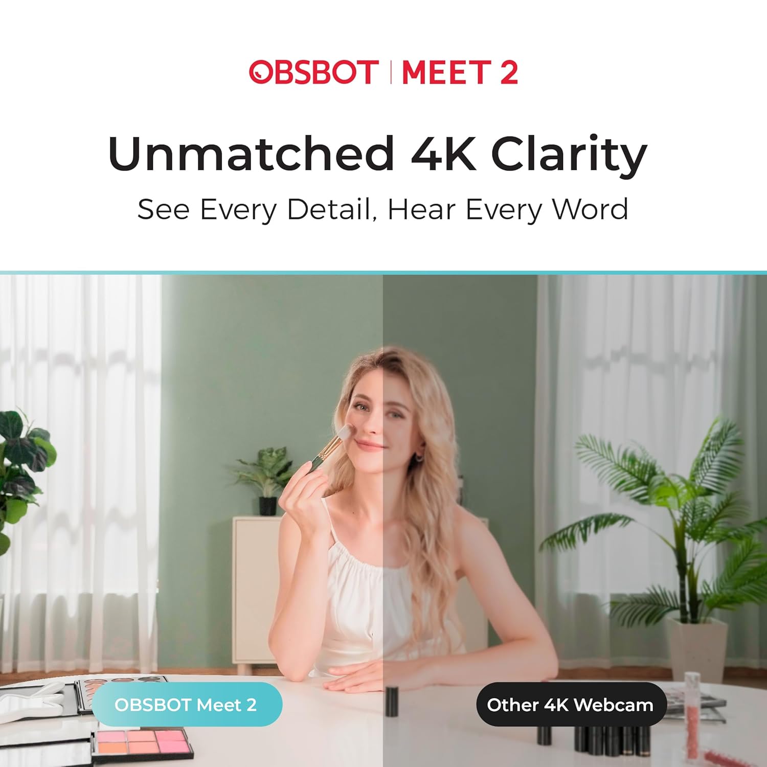 【Mini in Size, Mighty in Sight】The upgraded OBSBOT Meet 2 webcam 4K combines AI features with a sleek compact design. Enjoy a wide selection of colors to personalize your setup, and experience improved performance without the high cost.