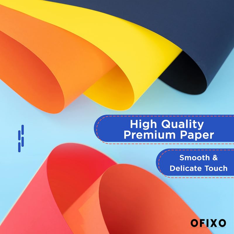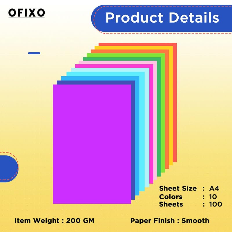 OFIXO 100 Pieces Colour Sheets Copy Printing Papers/Art and Craft Paper A4 Sheets Double Sided Coloured Origami Folding DIY Craft Smooth Finish Home, School, Office Stationery (10 Sheets each color)