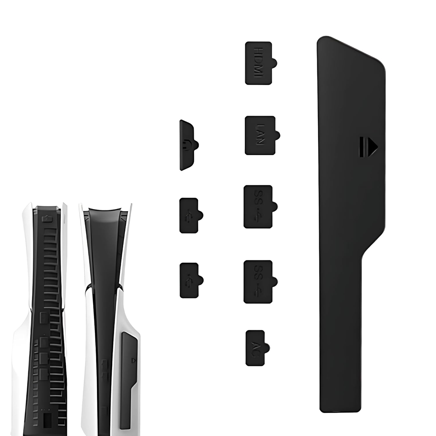 PRECISION FIT FOR PS5: Well designed and manufactured according to the standard HDMI ports of PS5. Our premium-grade silicone plugs are environmentally friendly, wear-resistant and durable for long-term use. This 9-piece silicone dust plug set is expertly crafted to provide your PS5/PS5 Slim console with a perfect fit, offering comprehensive protection against dust and debris to keep your gaming system clean and functioning optimally.