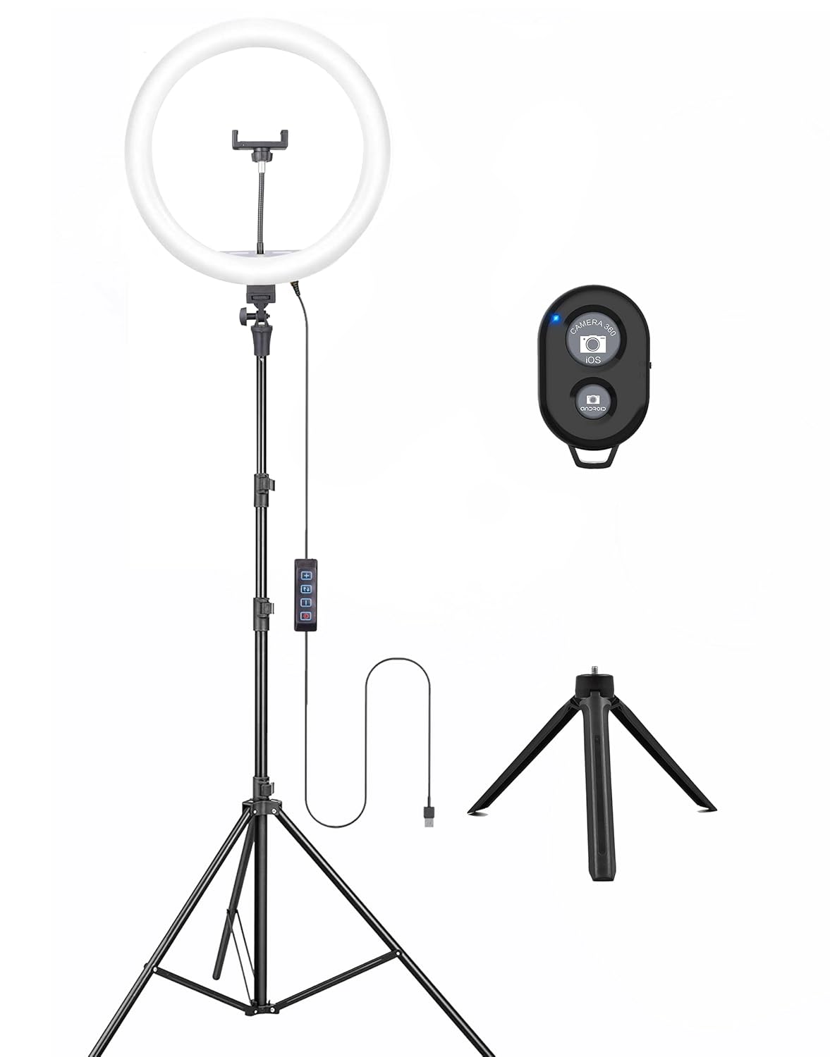 【Content】The package includes 14inch Ring Light – 1no, GooseNeck – 1no, Phone Holder – 1no, Light Stand – 1no.