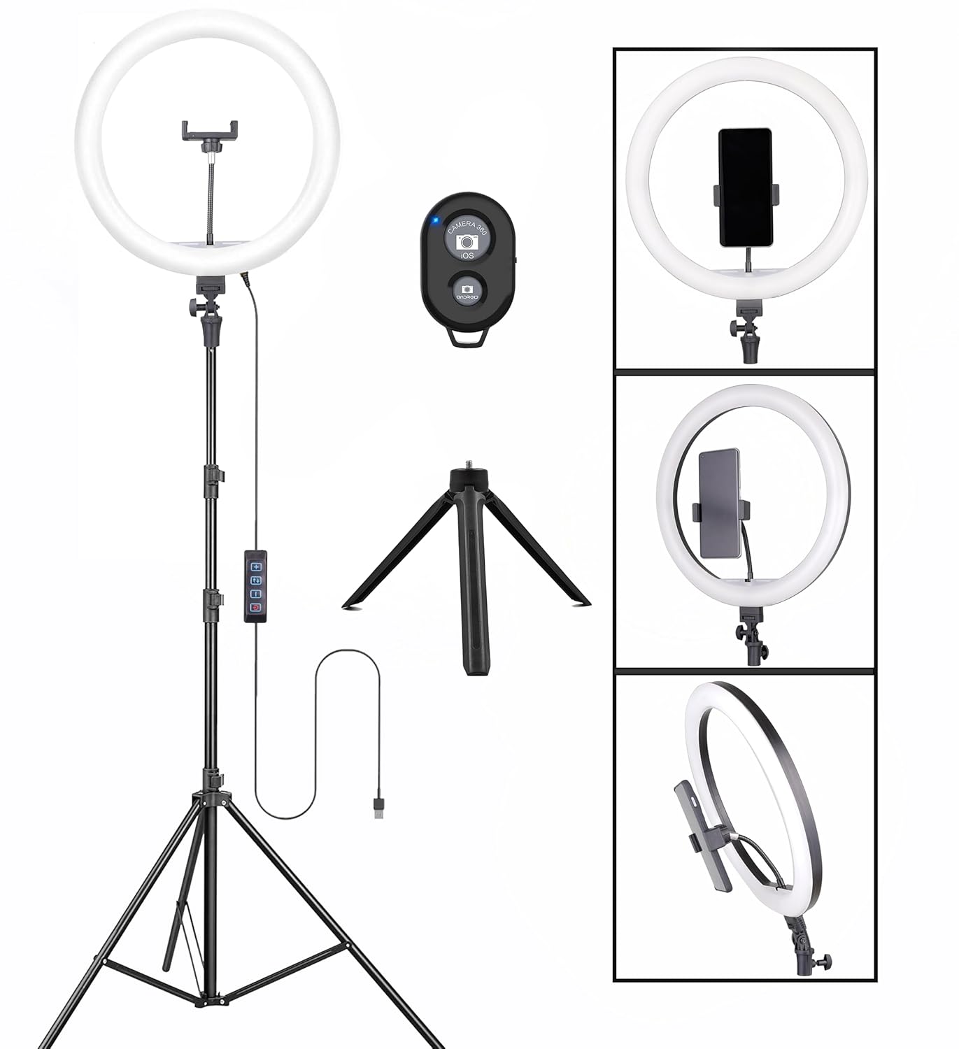 【Universal Accessories】The ring light kit comes with GooseNeck and a phone holder for all Smartphone models.
