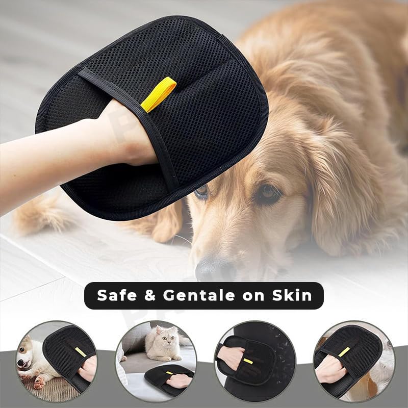 Gentle Pet Grooming Gloves: The glove design not only removes loose fur but also massages your pet’s skin, improving circulation and making grooming a bonding activity.