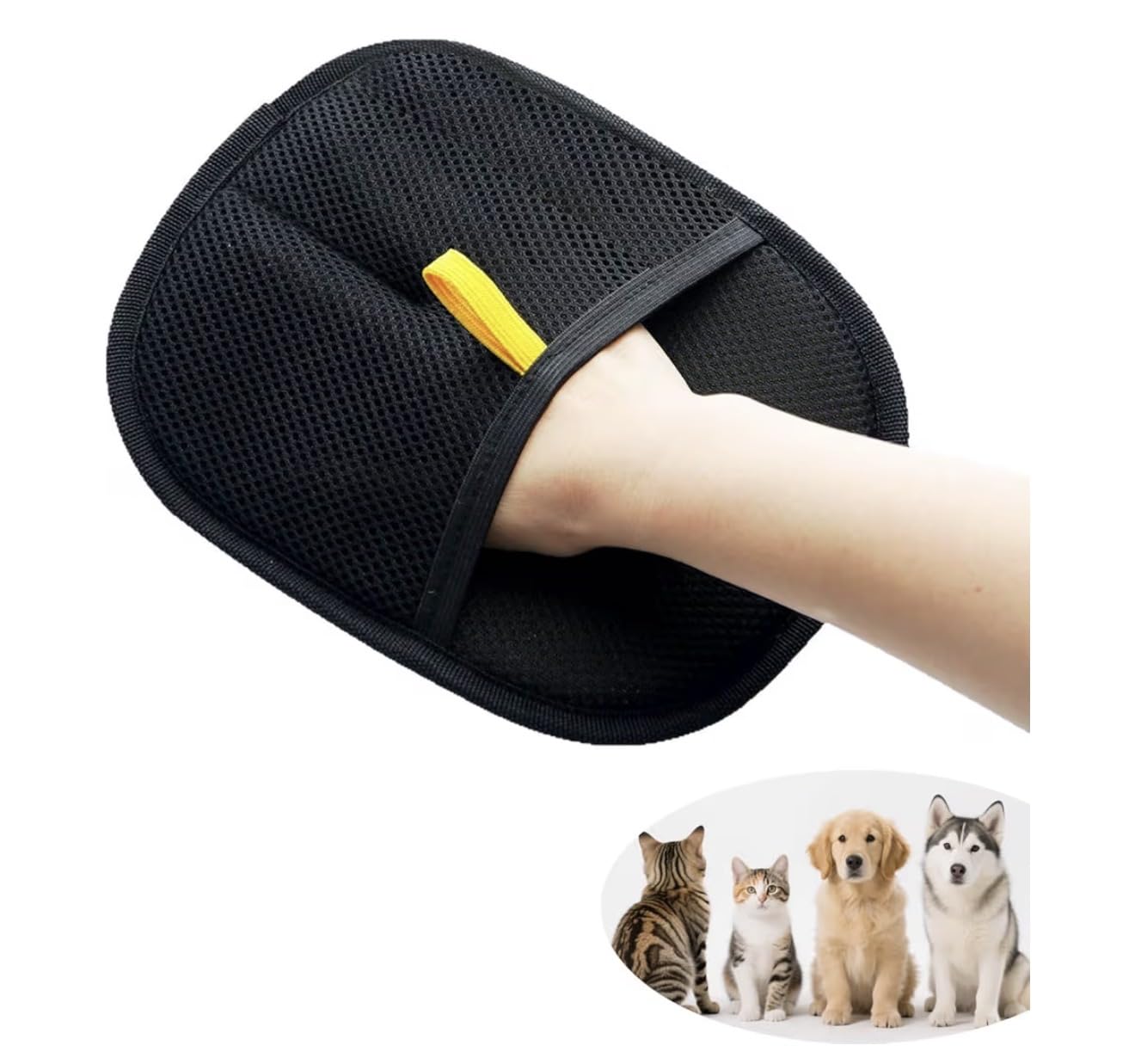 PetGroomer Pro Washable Pet Hair Remover Glove, Black Mesh Electrostatic Grooming Mitt, Reusable Fur Cleaning Tool for Furniture, Carpets, and Pet Care