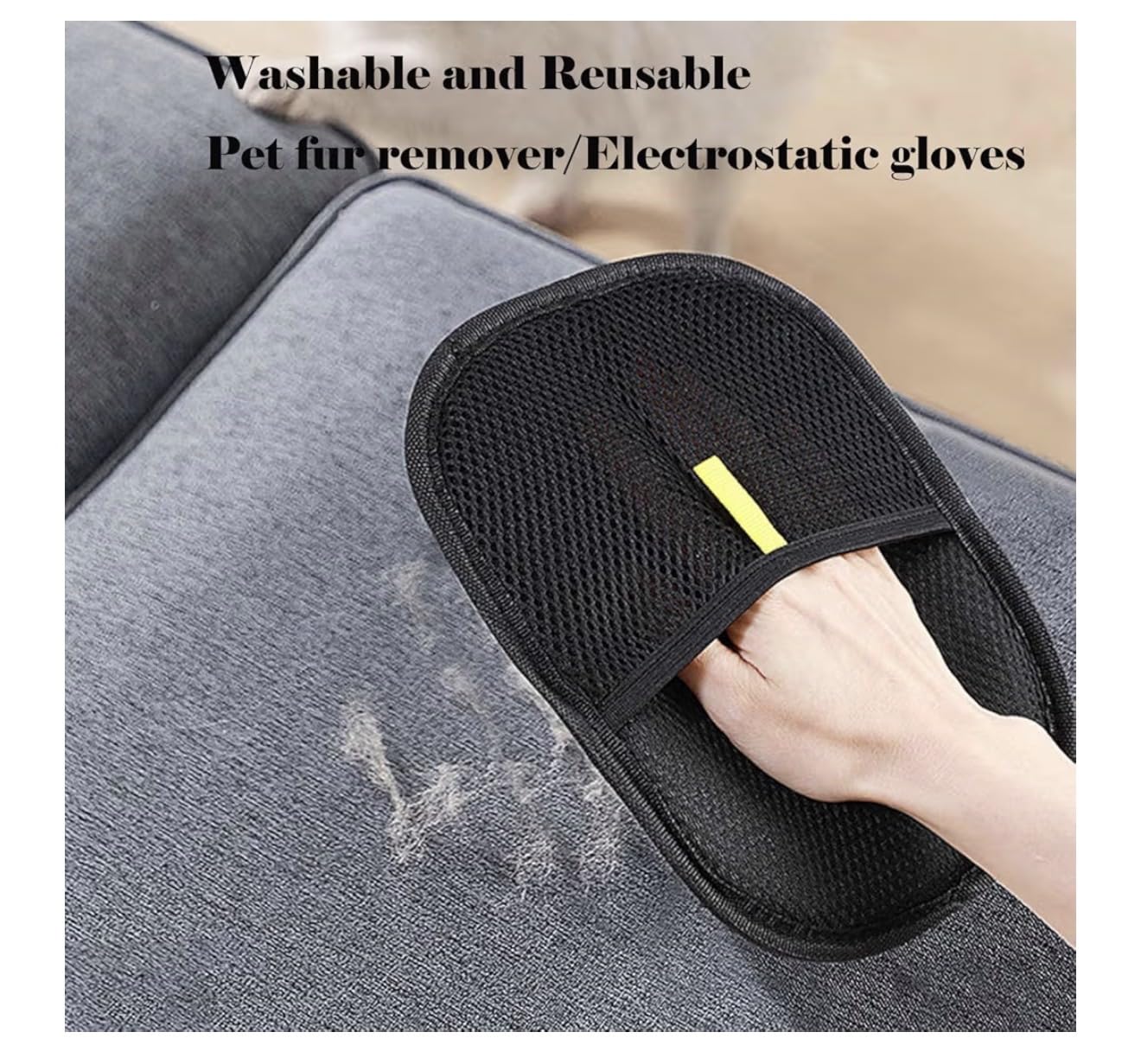 Keep your home clean and your pets well-groomed with the PetGroomer Pro Washable Hair Remover Glove. Designed with high-quality electrostatic mesh, this glove removes pet hair instantly from furniture, carpets, clothing, beds, and car interiors. Simply wipe the surface to lift off loose fur — no refills, no sticky tape, and no battery needed. The breathable mesh design makes it comfortable to wear even for long grooming sessions, and it fits all hand sizes easily. This glove is also washable and reusable, making it an eco-friendly alternative to lint rollers and disposable hair removal tools. Safe for both dogs and cats, it gently attracts loose fur while grooming and helps reduce shedding around your home. Perfect for daily use, travel, and quick cleaning, this lightweight fur remover glove is a must-have tool for every pet parent.