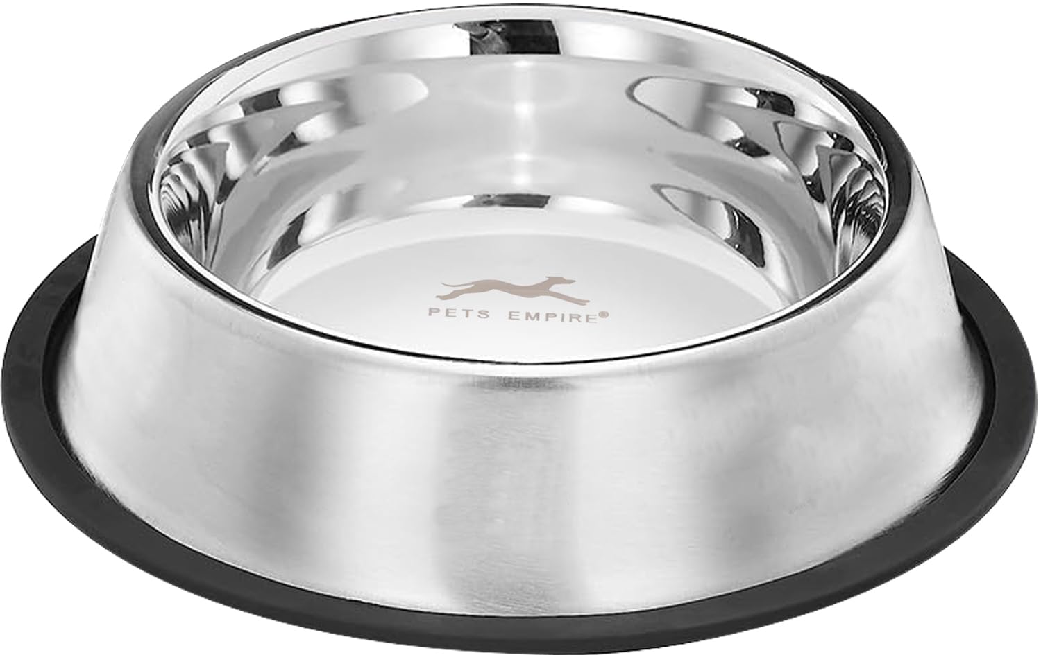 SET OF 2 STAINLESS-STEEL FOOD BOWLS: This product includes a pair of stainless-steel dog food bowls, making it convenient for pet owners with multiple pets or for those who want to have a spare bowl on hand.