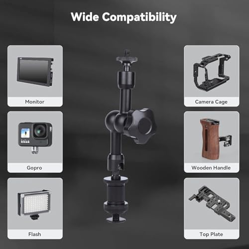 Versatile Mounting Solution: The PHOTOMAX Magic Articulating Adjustable Arm offers a universal , making it compatible with a wide range of devices such as DSLR cameras, LED lights, microphones, LCD monitors, and more. This flexibility makes it an essential accessory for any content creator or professional photographer.