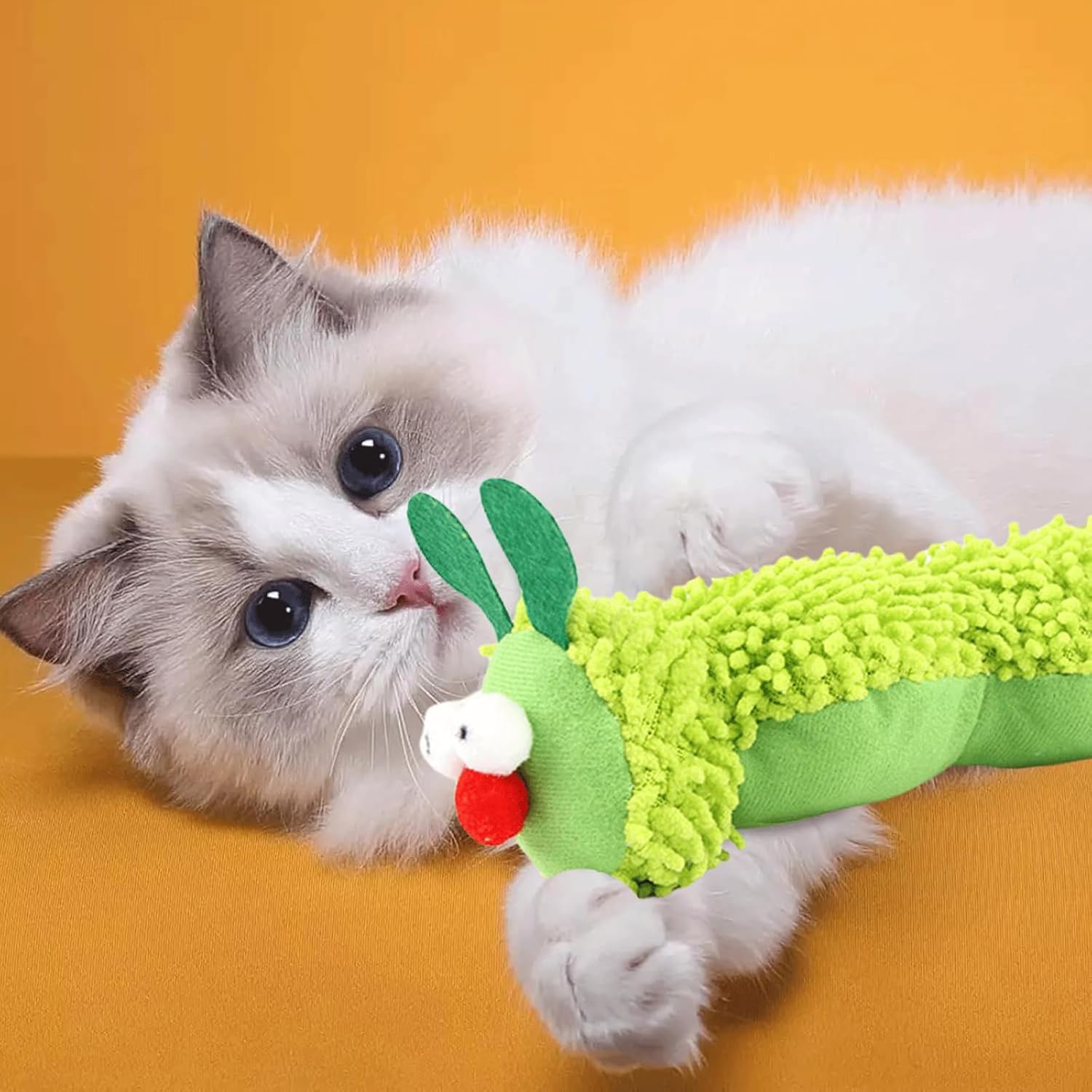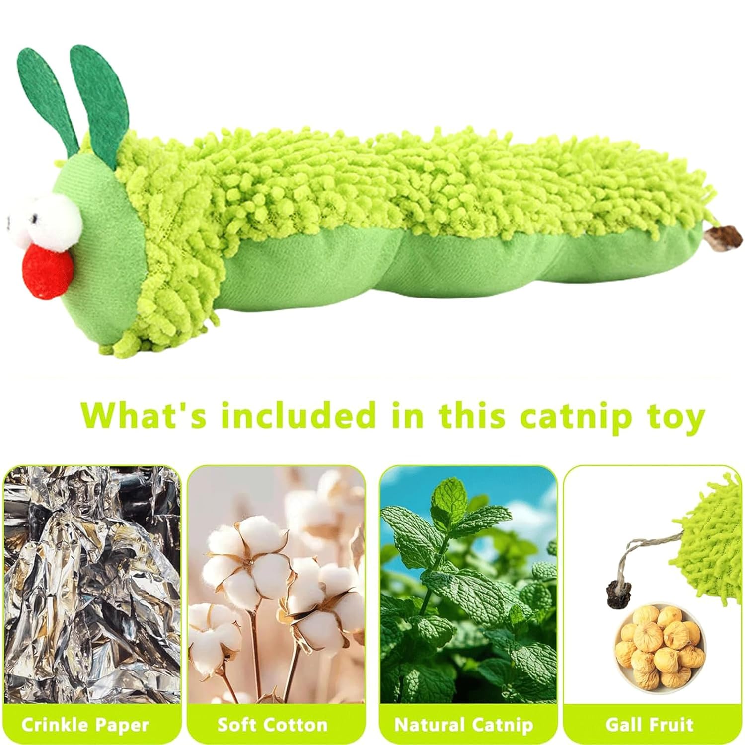 Interactive Cat Toy: Catnip toys for cats, This caterpillar-shaped toy features engaging textures to stimulate your cat’s natural hunting instincts; The playful design encourages active play, keeping indoor cats entertained for hours
