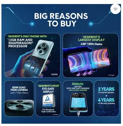 6 GB RAM | 128 GB ROM | 4 Gen 2 5G Processor | 6.88 inch HD+ Display |50MP Rear Camera | 8MP Front Camera 5160 mAh Battery