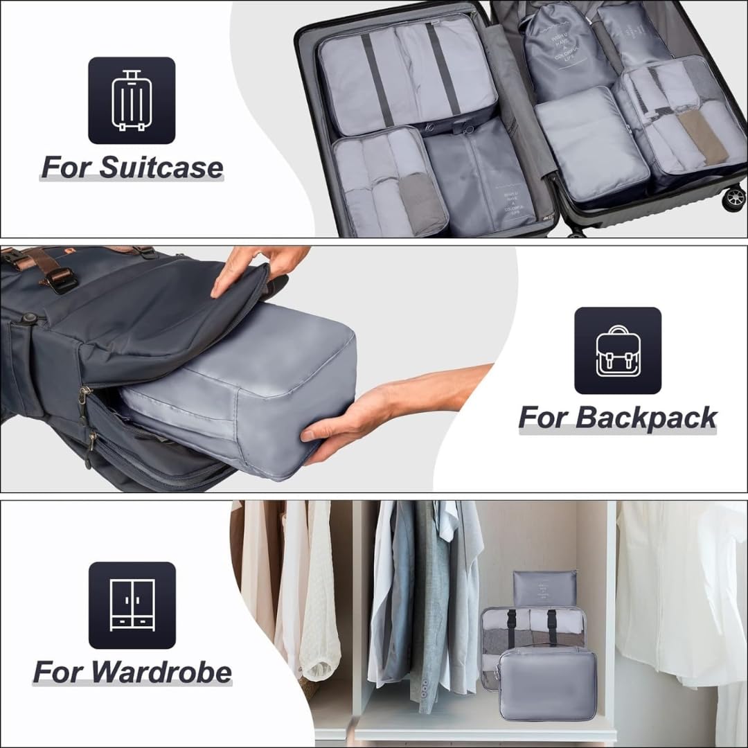 LUGGAGE COMPATIBILITY : Compatible with most travel bags, luggages, suitcases, backpacks, bagpacks, duffle bags. Can fit in 24-25 inch travel luggages. These packing organizers can make it easy for you to save space in your luggage/bag by classifying your belongings and keeping them from getting lost. This also makes security checks at the airport quick and convenient.