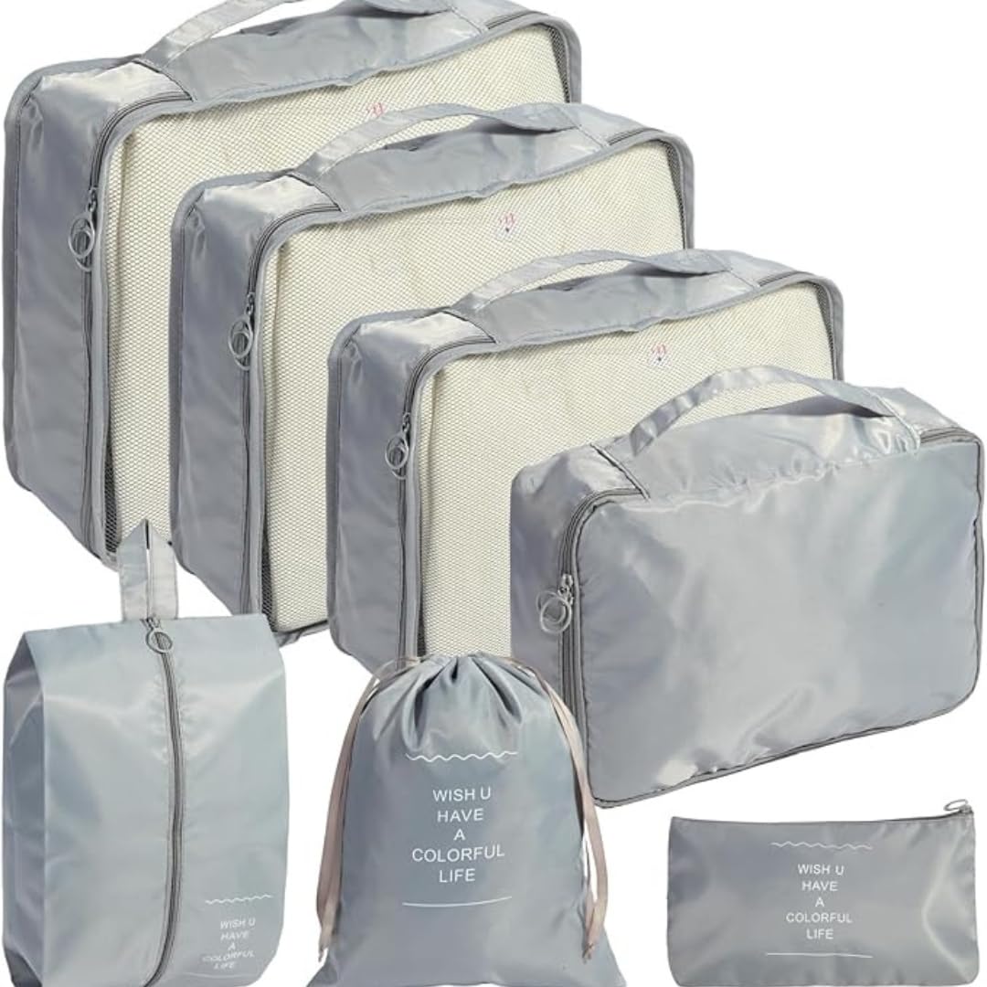 Be the first to review “Polyester 7 Set Travel Organizer Bag 3 Packing Cubes + 3 Pouches + 1 Toiletry Organizer Bag (Grey, 27.99 Cm, 11 Cm)”