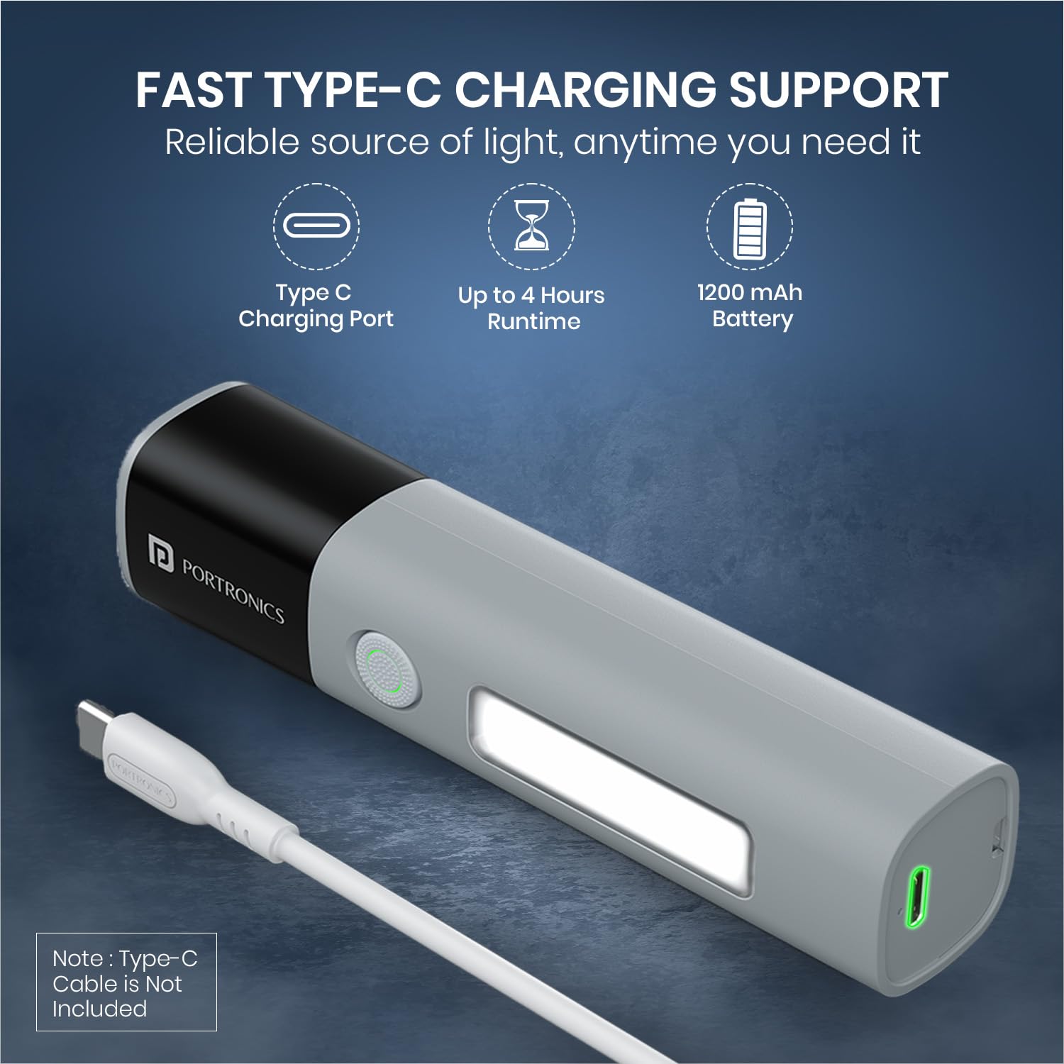 Tactical Rechargeable LED Torch: Portronics Eco Glow 2 is a compact and powerful flashlight designed for everyday use, outdoor activities, and emergency situations. Built for reliability in all lighting needs.