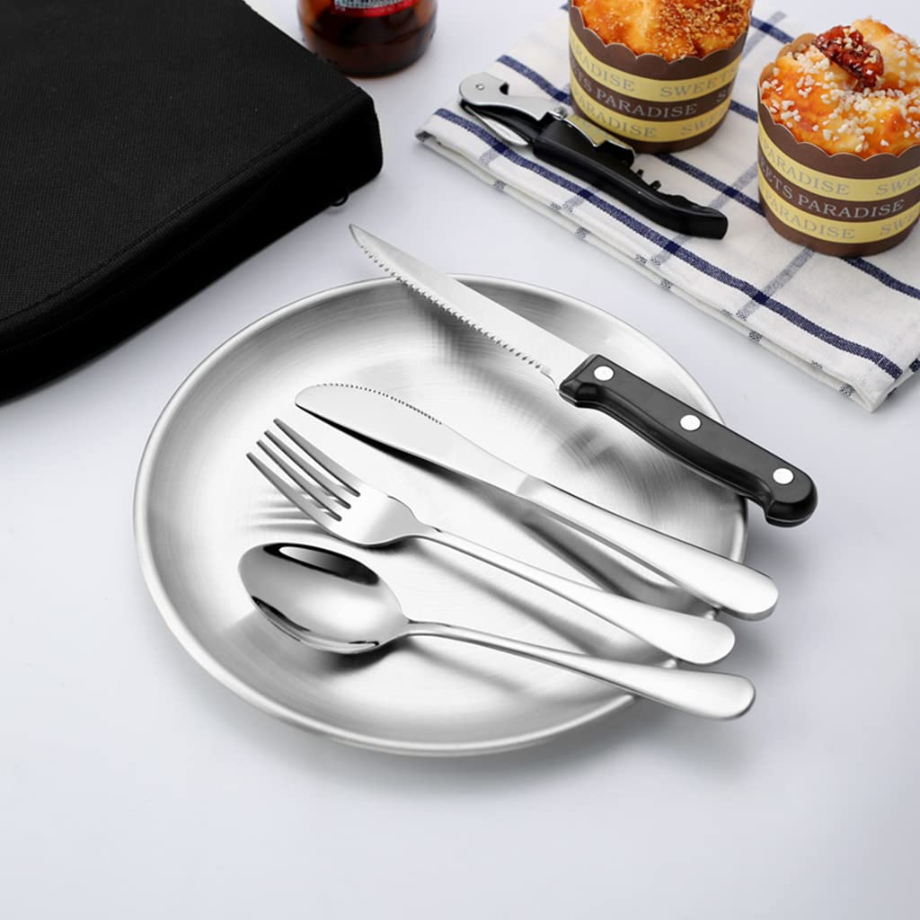 HIGHLY PORTABLE CUTLERY SET FOR TRAVEL: Designed to be lightweight and compact, this cutlery set for travel is ideal for road trips, picnics, and camping. It can be conveniently stored in your car, always ready for your next adventure.