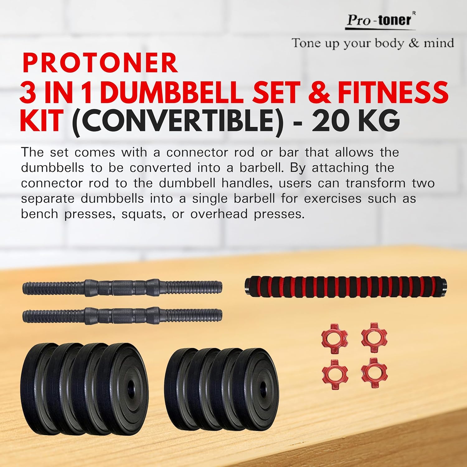 Be the first to review “Protoner PVC 3 in 1 convertible DM 4-40 Kg Dumbbells Set and Fitness Kit for Men and Women Whole Body Workout (20 kg (2 kg x 4, 3 kg x 4), 3 in 1 convertible)”