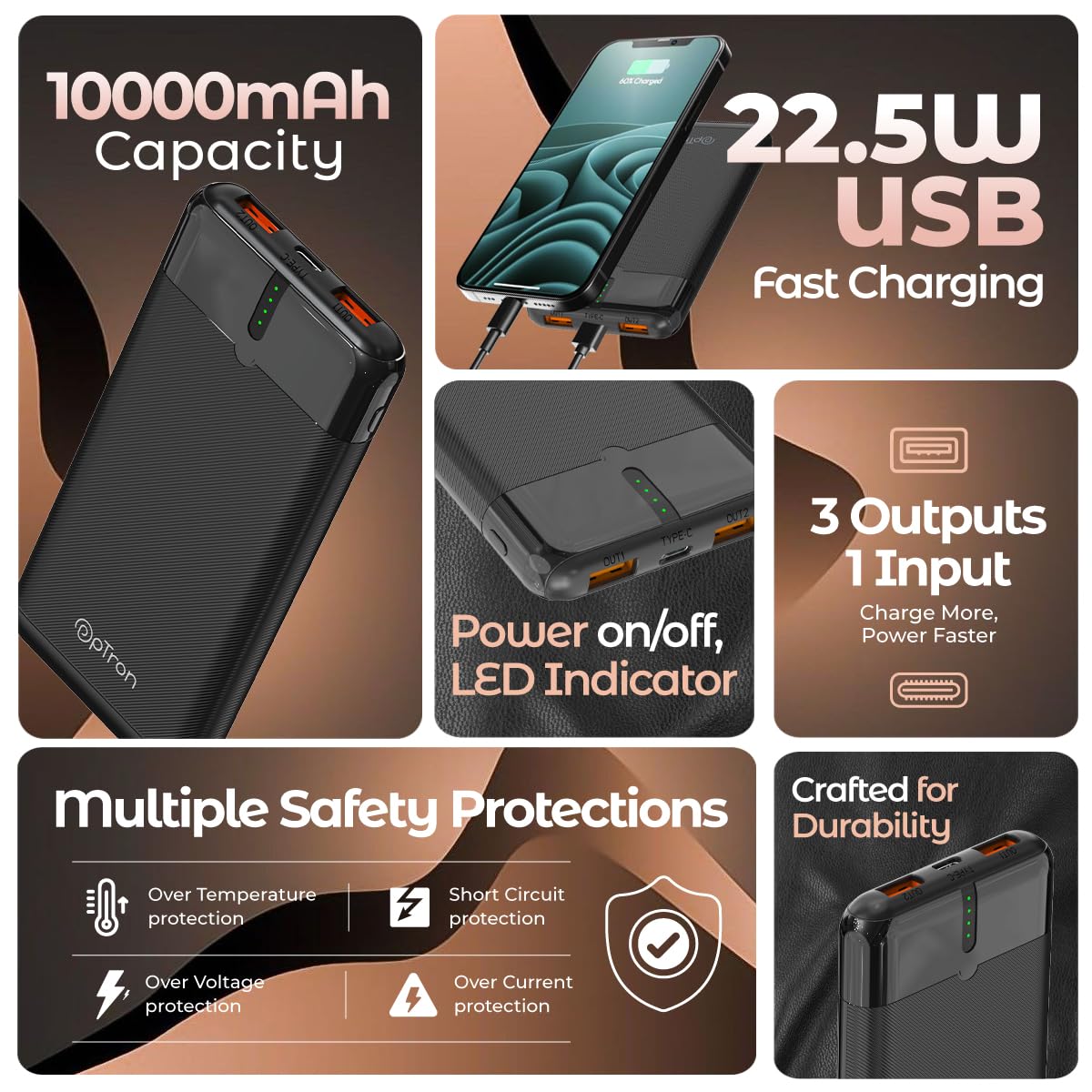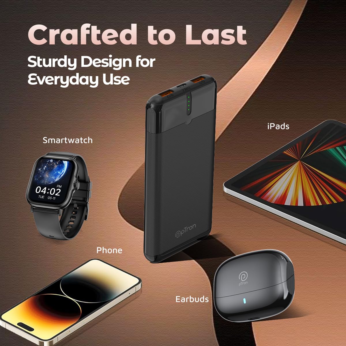 Be the first to review “pTron Newly Launched Dynamo Nergy 10000mAh 22.5W Fast Charging Power Bank, Supports VOOC/Wrap/Dash USB Charging, 20W PD Fast Charging, 3 Outputs, 1 Input & Multiple Layers of Protection (Black)”