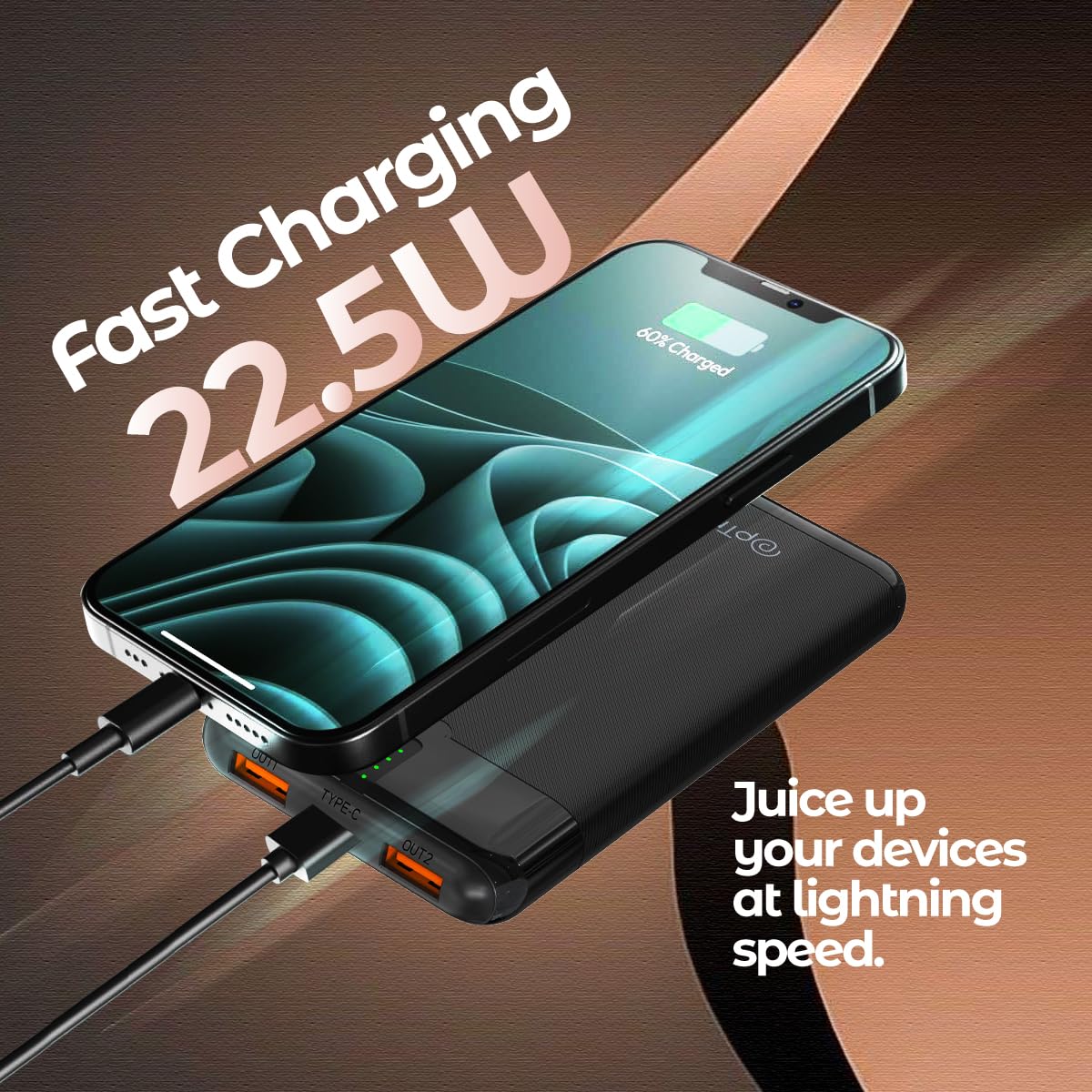 Dynamo Nergy Powerbank supports fast wired charging through USB (22.5W) & Type-C/PD ports (20W) | You can Charge 3 Devices Simultaneously | Multiple layers of advanced protection in the Chipset