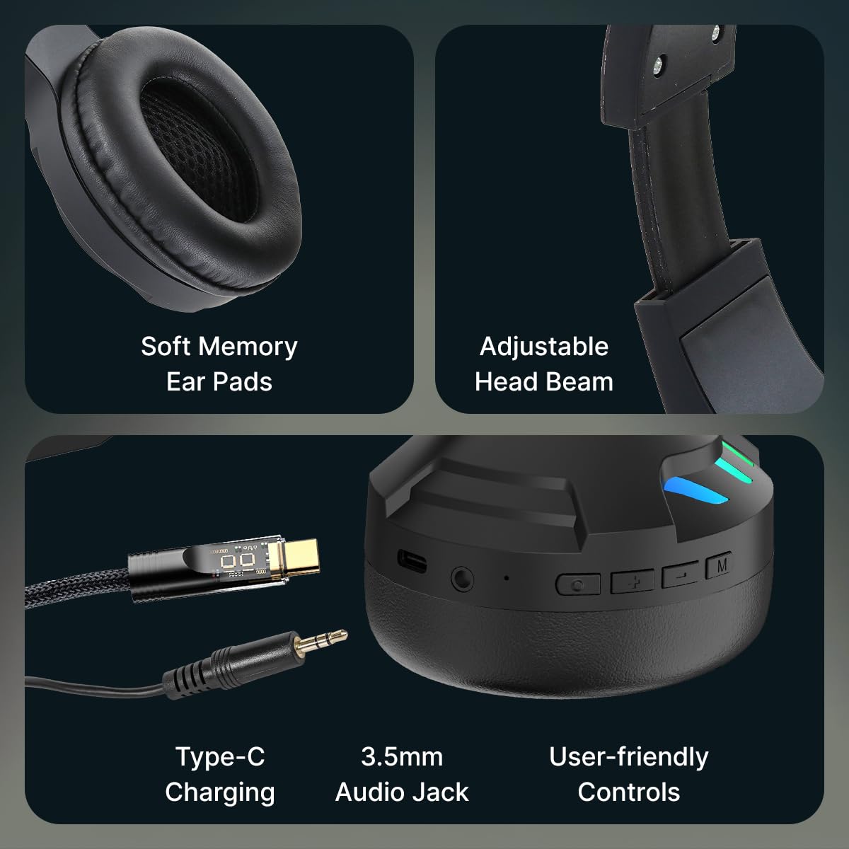 Ergonomic, Lightweight & Foldable Headphones with Adjustable Headband & Soft Earcups || Bluetooth v5.3 for Quick Pairing & Strong Connectivity || 3.5mm Aux port for Wired Music Streaming
