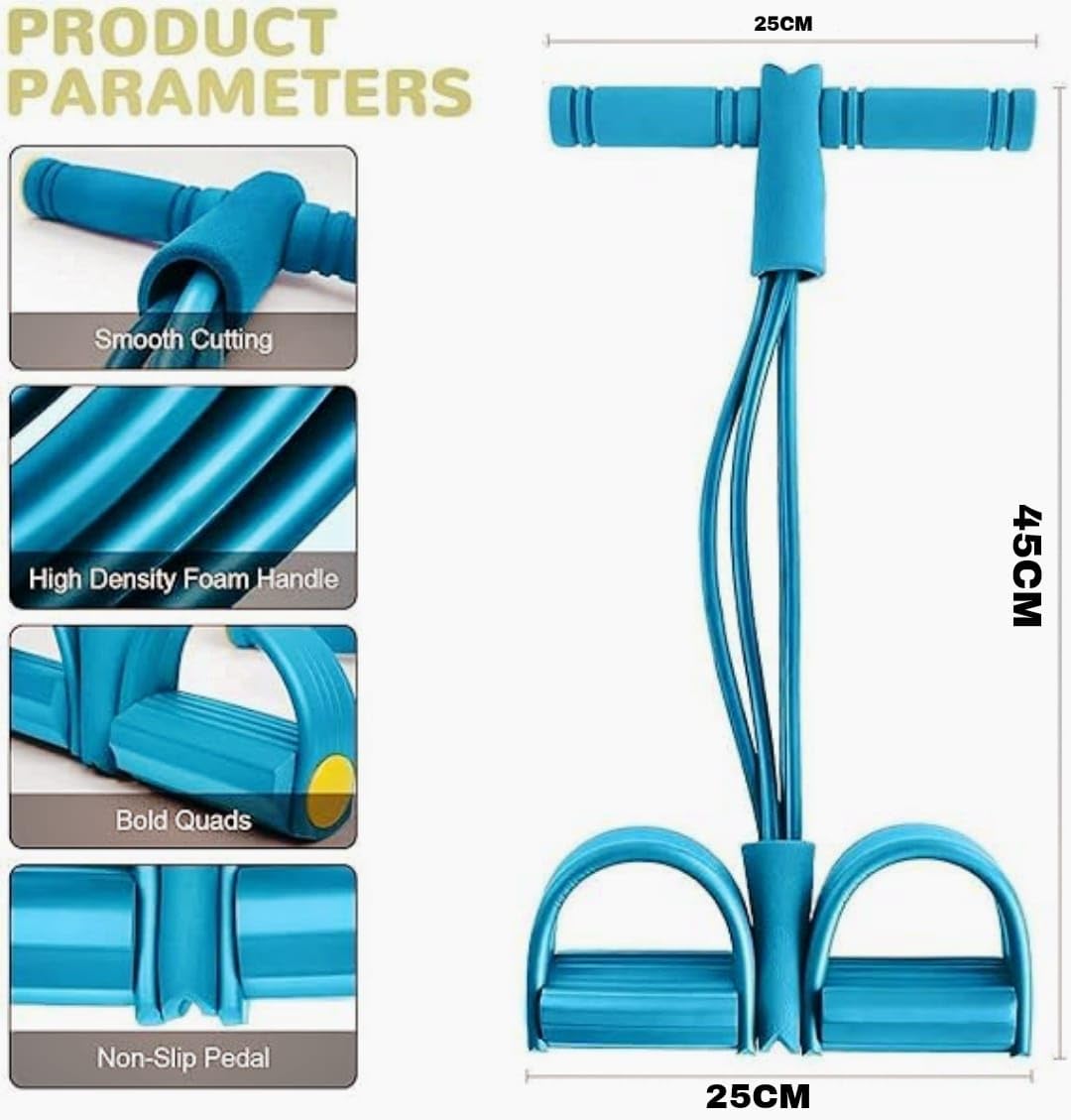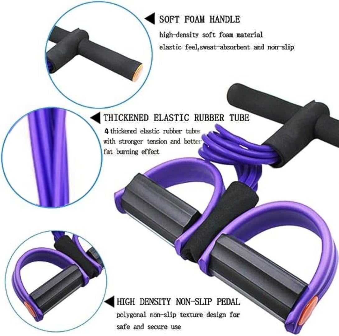 【4 TUBES PEDAL RESISTANCE BAND】- 4 Tube pedal fitness rope made of enviromental foam, and tube is made of NBR, which is healthy to body. 4pcs pull ropes, high tensile strength and good elasticity than 2pcs ropes