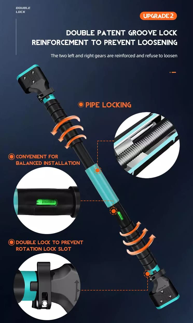 N0 Screws & No Drilling- You only take minutes to set it up and remove it on the door frame. Just rotate the pole to press against the door frame. Pay attention to DO NOT use the pull up bar doorway on glass door, hollowed door or other fragile door frame.