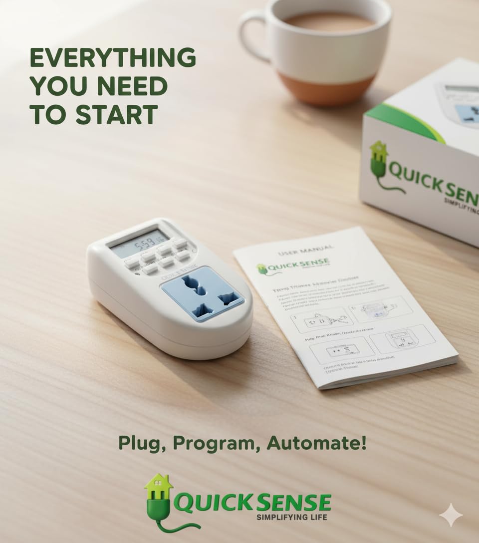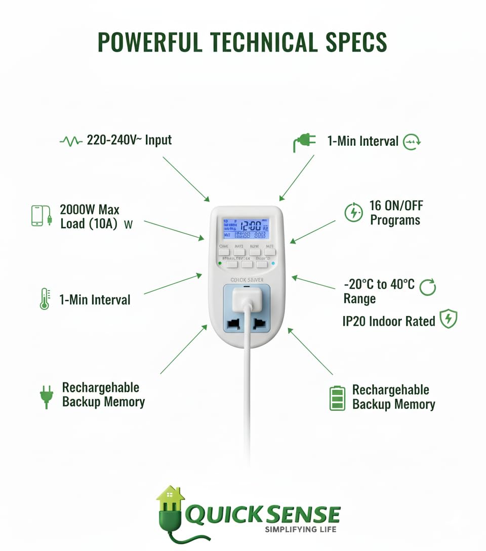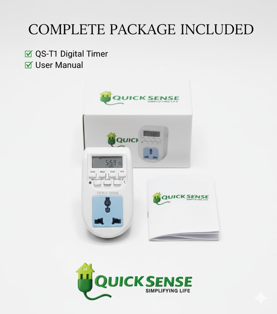 Be the first to review “Quick Sense QS-T1 Digital Timer Switch | Programmable LCD Display | 16 On/Off Settings | Energy Saving Automation | 220-240V AC | Plug-in Smart Timer for Appliances”
