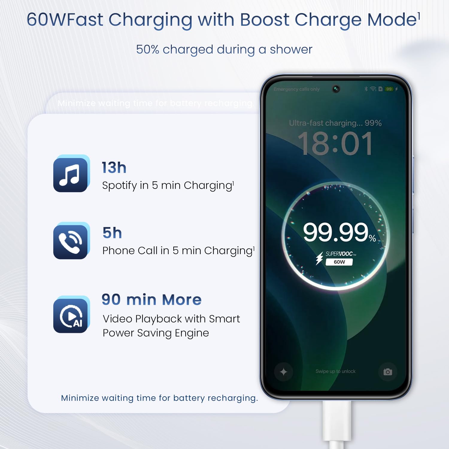With a 7000mAh massive battery, power through full days of calls, videos, and gaming without recharging. And when you need a boost, 60W fast charging gets you up to 50% in minutes—no more waiting around, even on busy schedules.