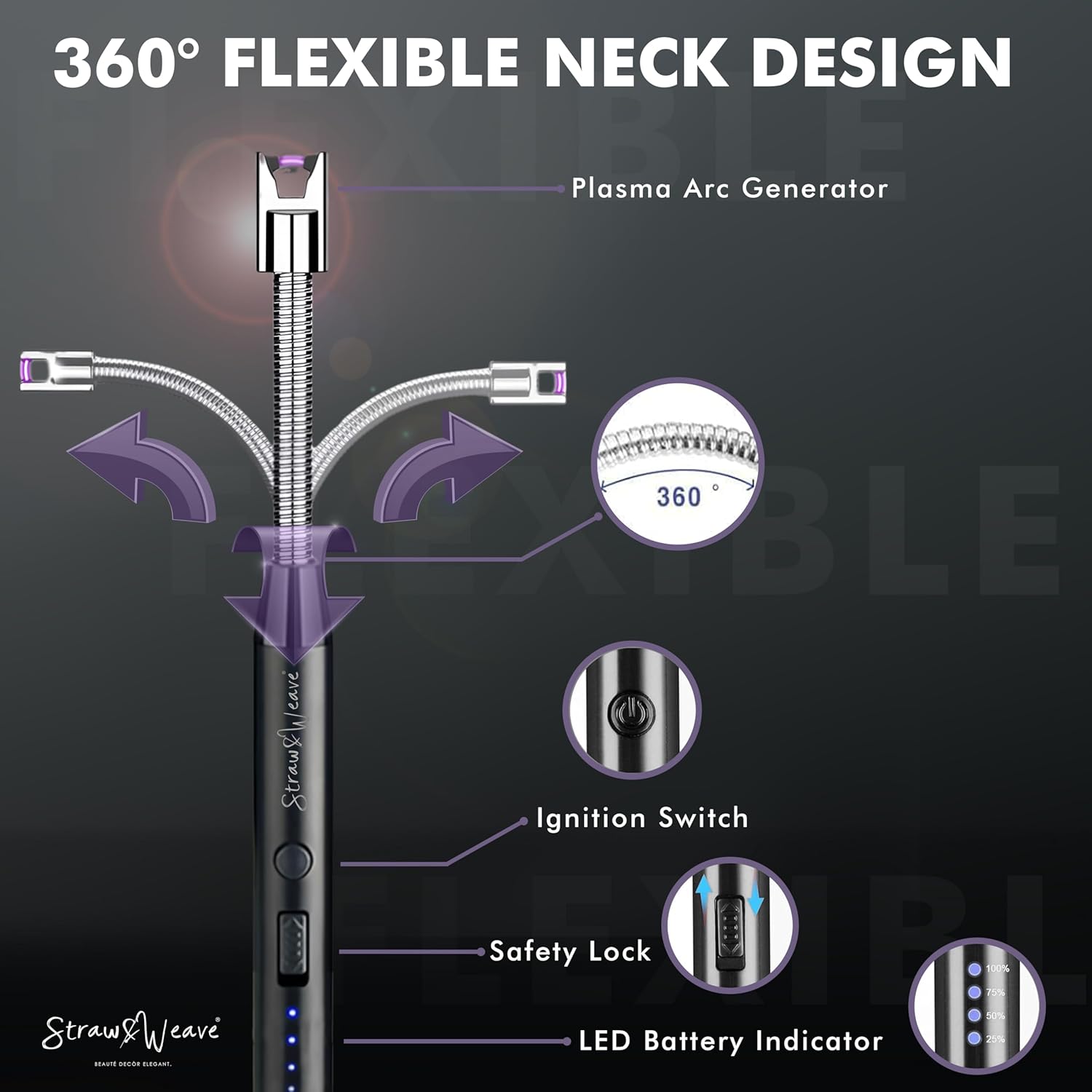 Longer Flexible Neck : Our upgraded lighter long has a long flexible neck (10cm or about four inches). It is easily rotated 360 degree for different lighting needs. Lightweight size is suitable for daily indoor and outdoor use.