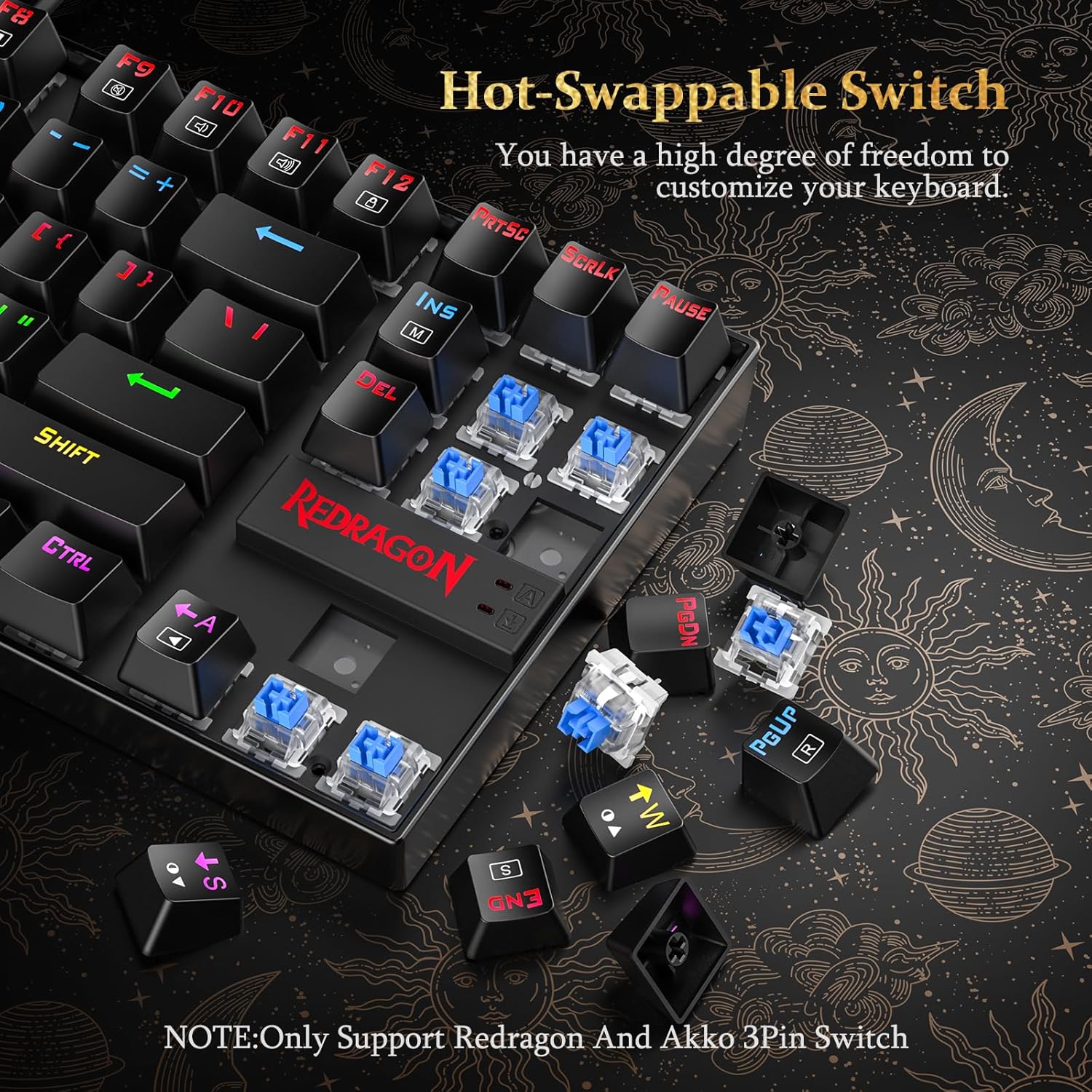Pick among multiple RGB backlight colours and 5 different lighting modes for all 87 keys or create your own custom settings