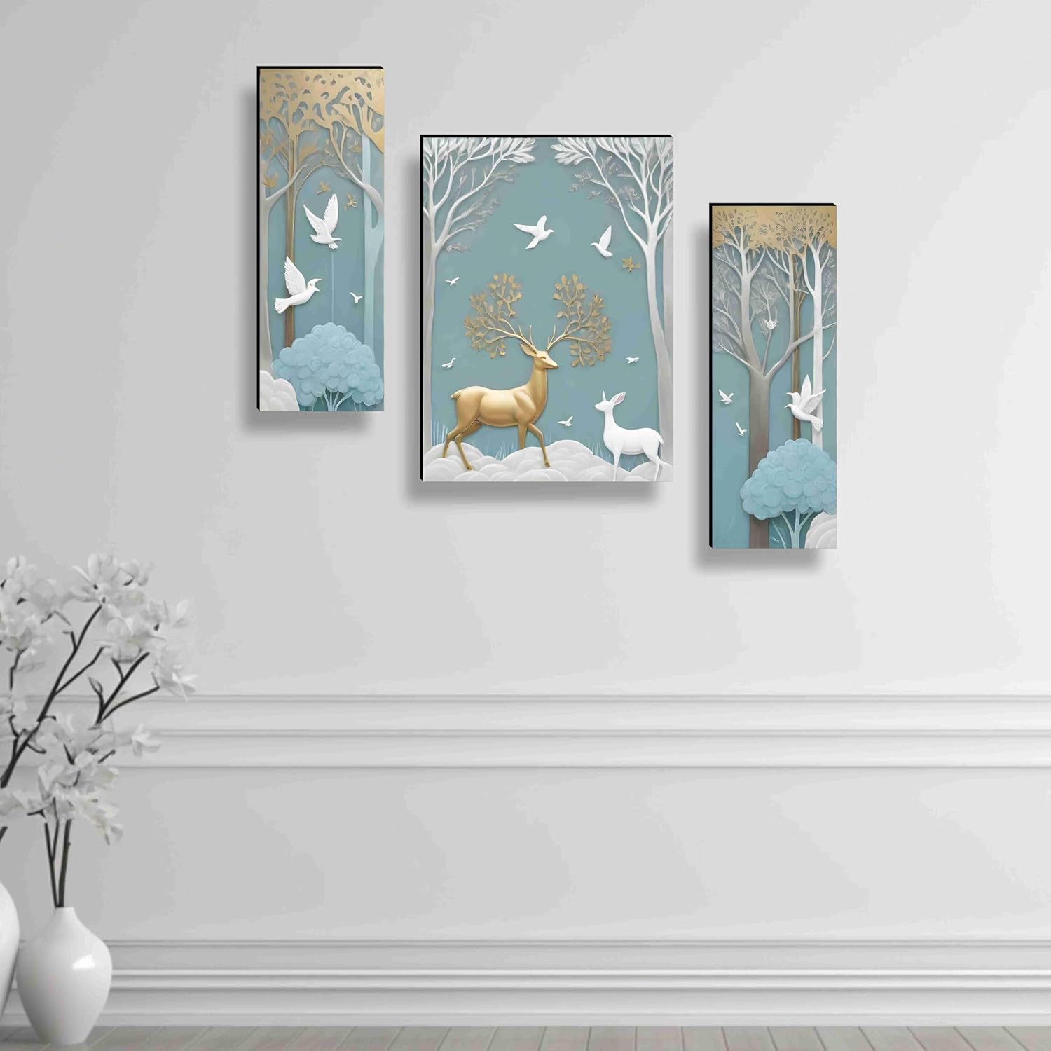 Be the first to review “SAF deer Paintings for Wall Decoration – Set Of 3, 3d modern art Painting for Living Room Large Size with Frames for Home, Office painting 50.8 cm x 30.48 cm SANFJM36036-Engineered Wood”