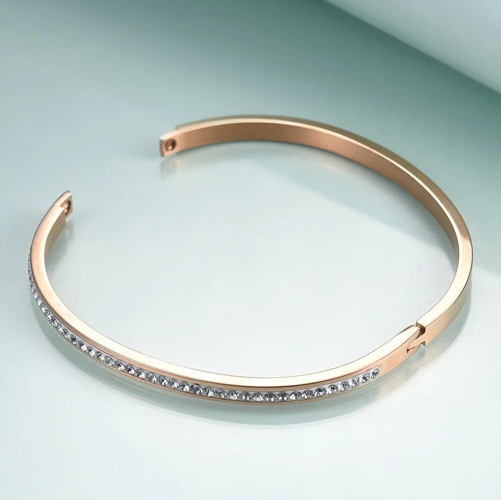 Shining Diva Fashion Anti Tarnish Jewellery | 18K Gold Plated Stainless Steel Openable Crystal Bracelet | Latest Stylish Cuff Bangle | Love Friendship Couples Gifts for Women Girls Mother Sister Wife Girlfriend