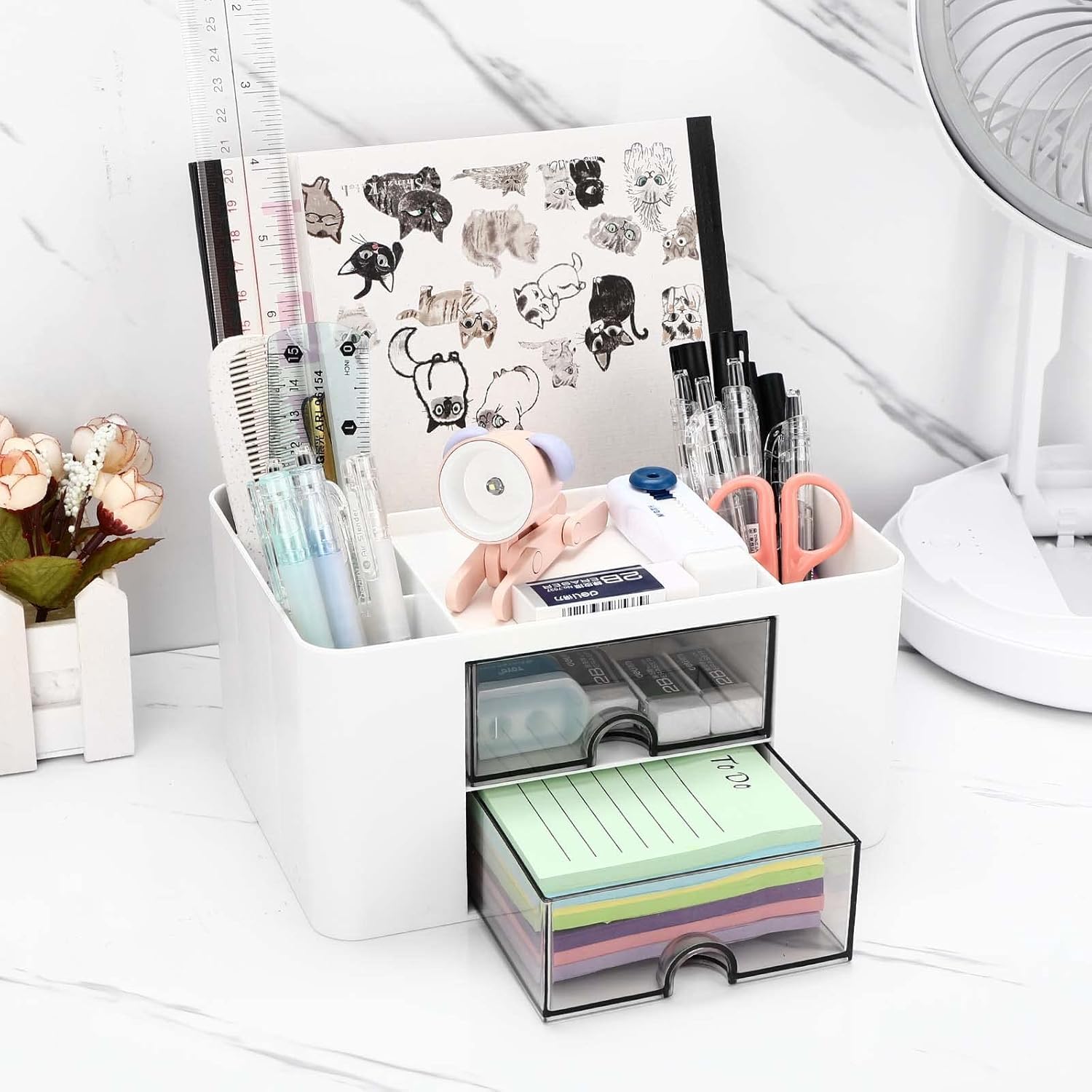 SPACIOUS & ORGANIZED LAYOUT : Comes with 5 compartments and a couple of drawers, offering ample area to retailer pens, staplers, clips, sticky notes, and extra—maintaining your desk neat and clutter-free.