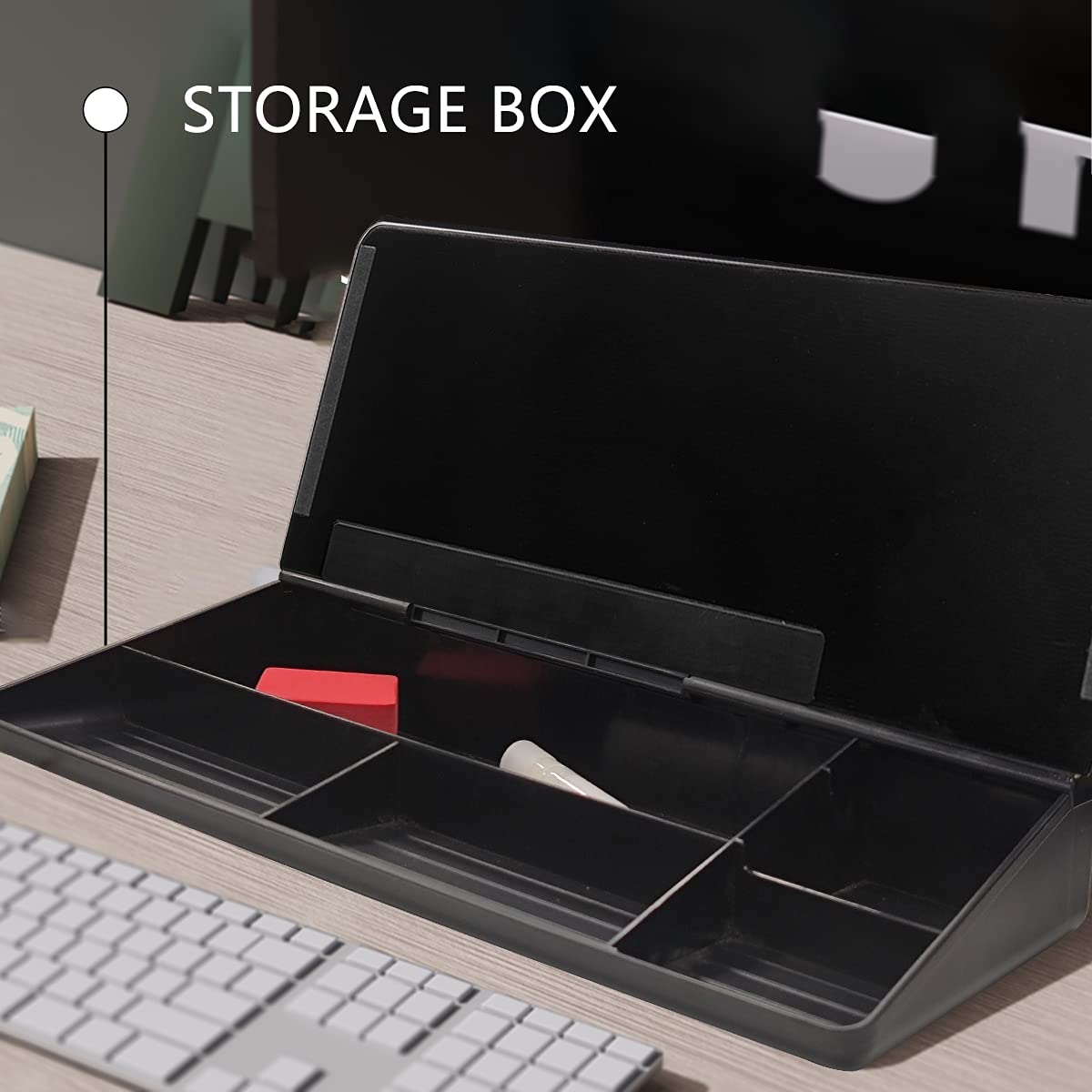 Internal Storage Space:There are 5 storage compartments inside the desktop whiteboard, which can store daily stationery such as pencils, dry wipers, erasers, paper clips, etc