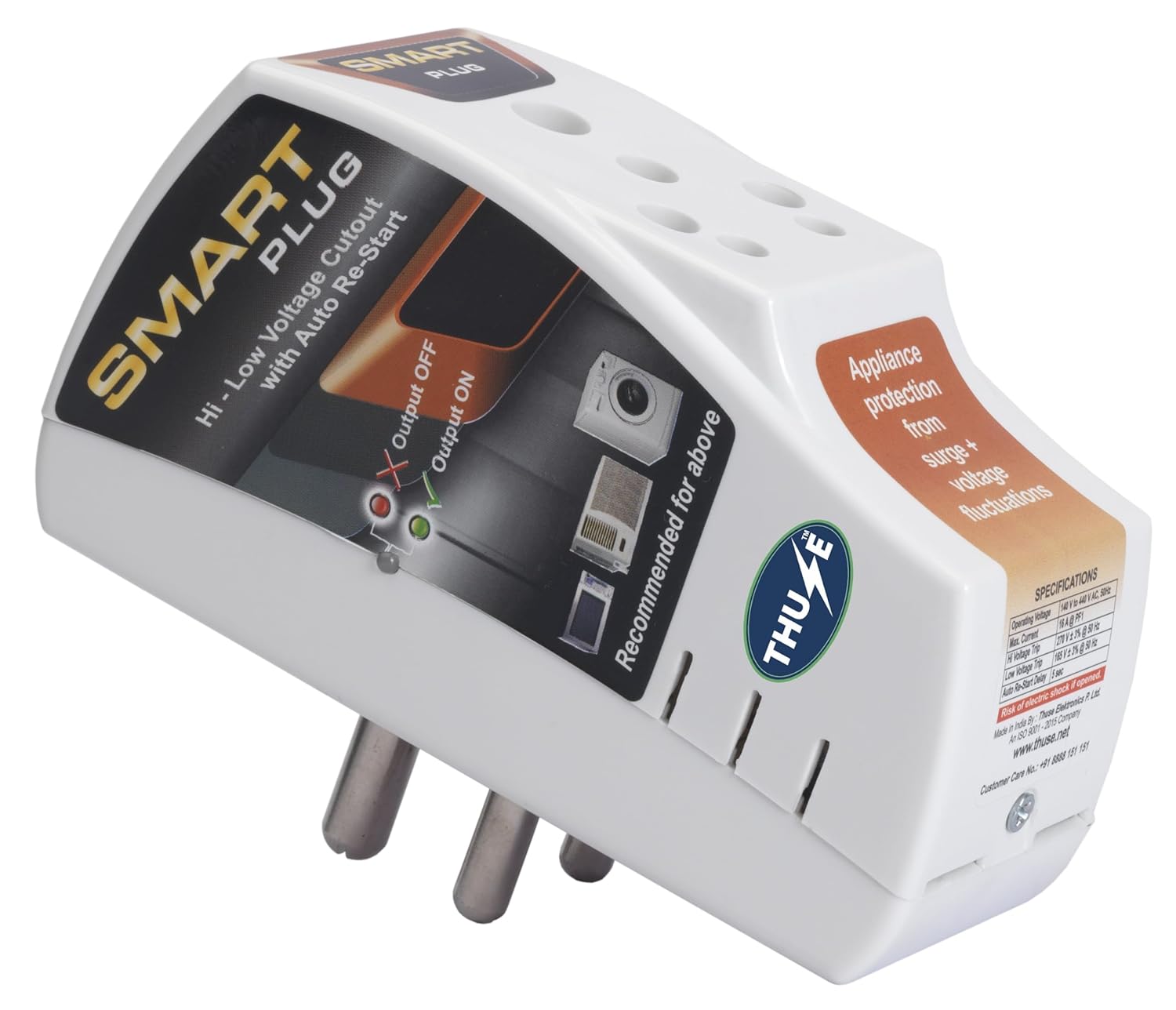 This is a voltage fluctuation protection plug from the house of Smart Plug. This is made out of a quality material for durability.