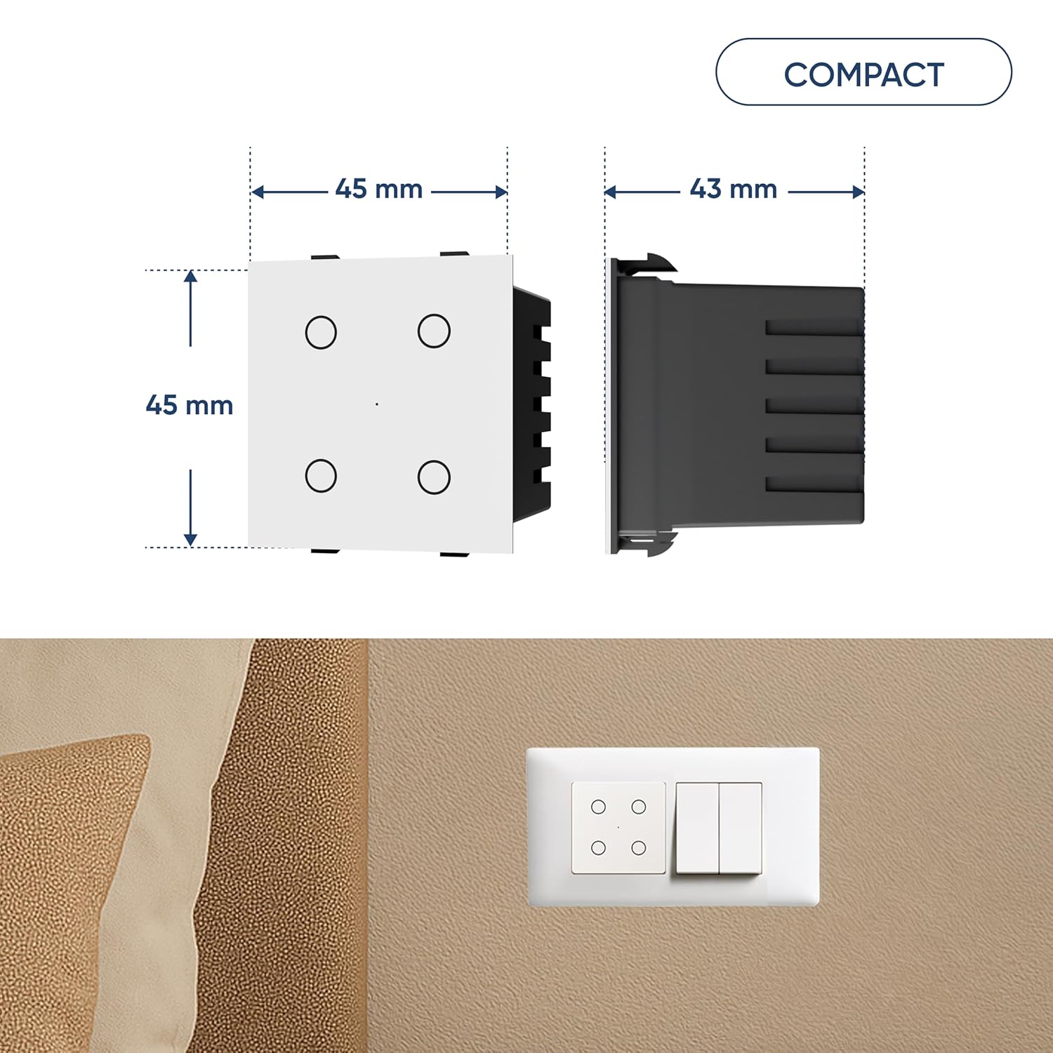 Enhanced Safety: Built with advance safety features, the Aziot Smart Modular 4 Touch Switch gives complete peace of mind. Overheat protection and overload prevention ensure your home stays safe even when you’re away