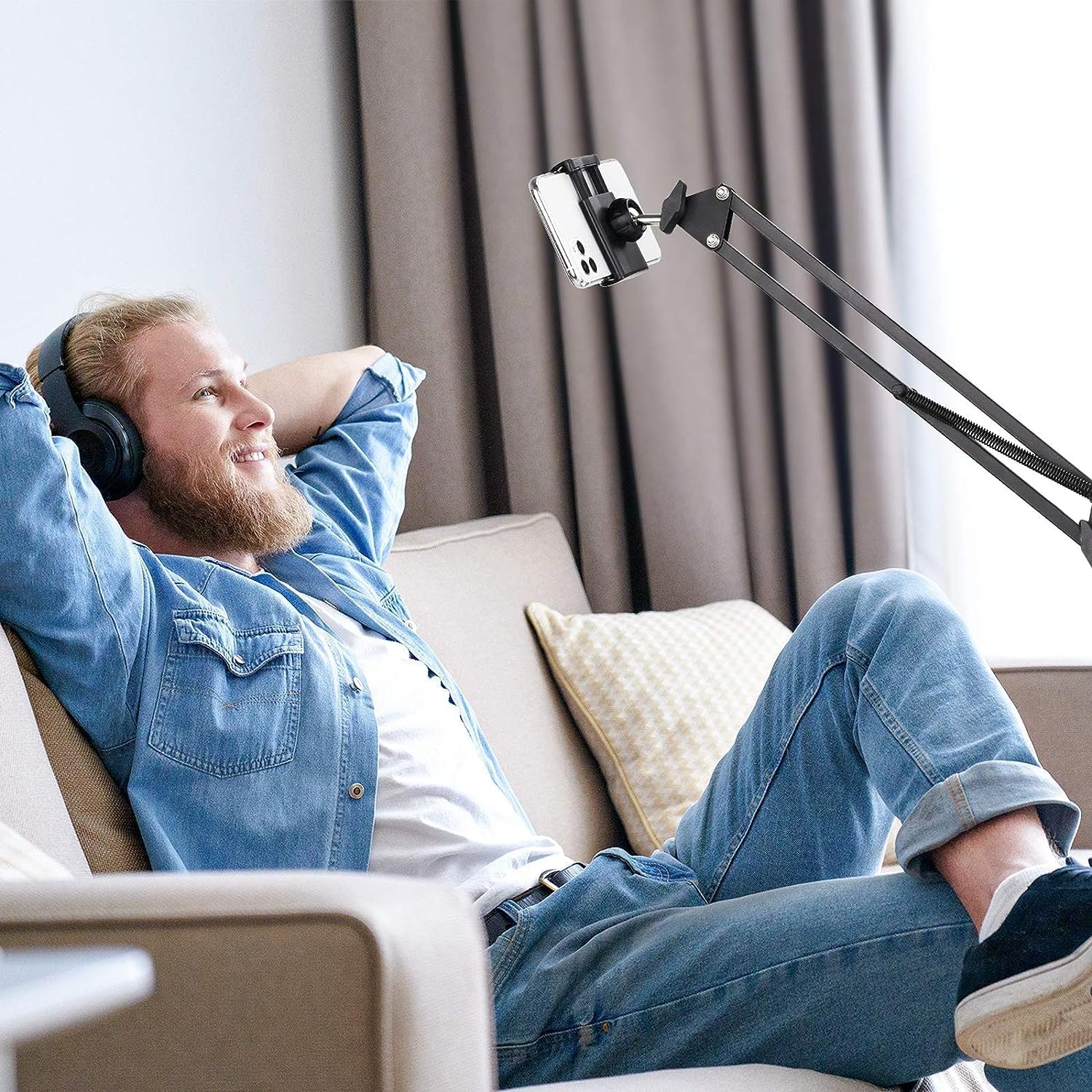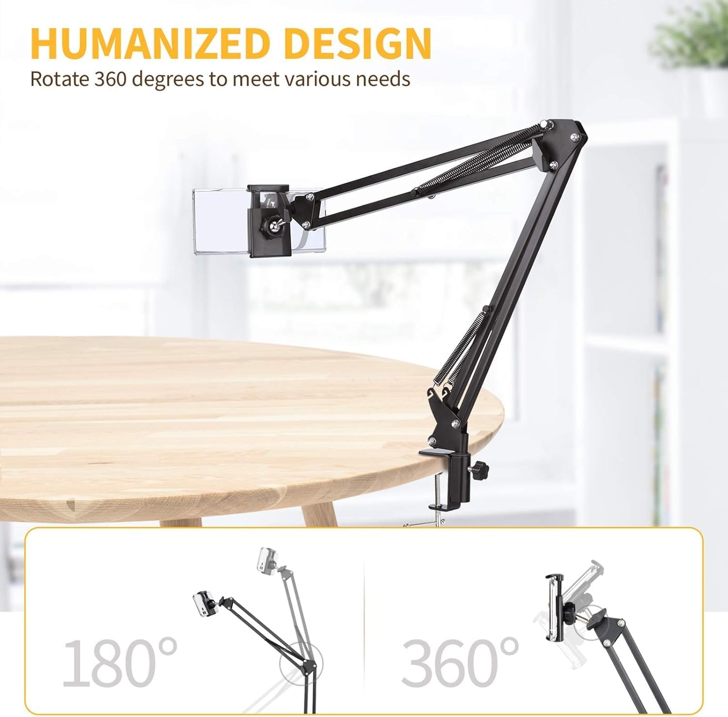 ✅【Adjustable Arm 】 This Stand has a long lazy arm that can be simply adjustable to any angle, resulting in a more versatile viewing experience. It can be placed at any distance from the work area, allowing you to use your phone hands-free.