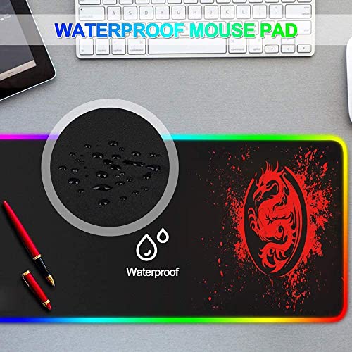 Specification: SPEED RGB Gaming Mouse Pad, Soft Glowing 14 LED Modes, Gaming Desk Keyboard Pad, Mouse Mat, Non-Slip Rubber Base – 78×30 cm – Red Dragon