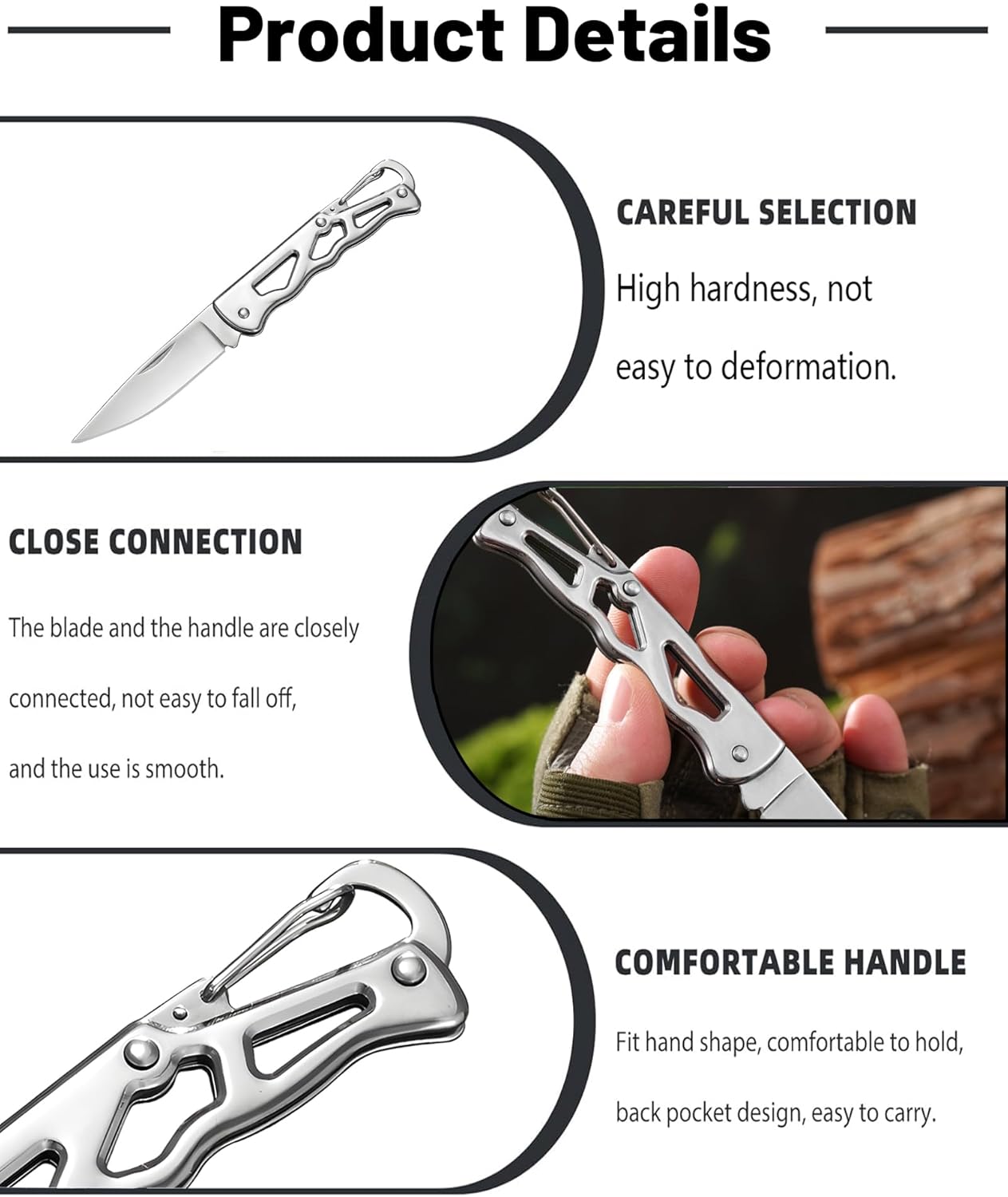 Compact and Portable: The folding keychain gadgets is lightweight and fits easily in pockets or bags; Its small size does not compromise its utility, making it a versatile tool for everyday carry; Designed for those who prefer minimal yet effective solutions.