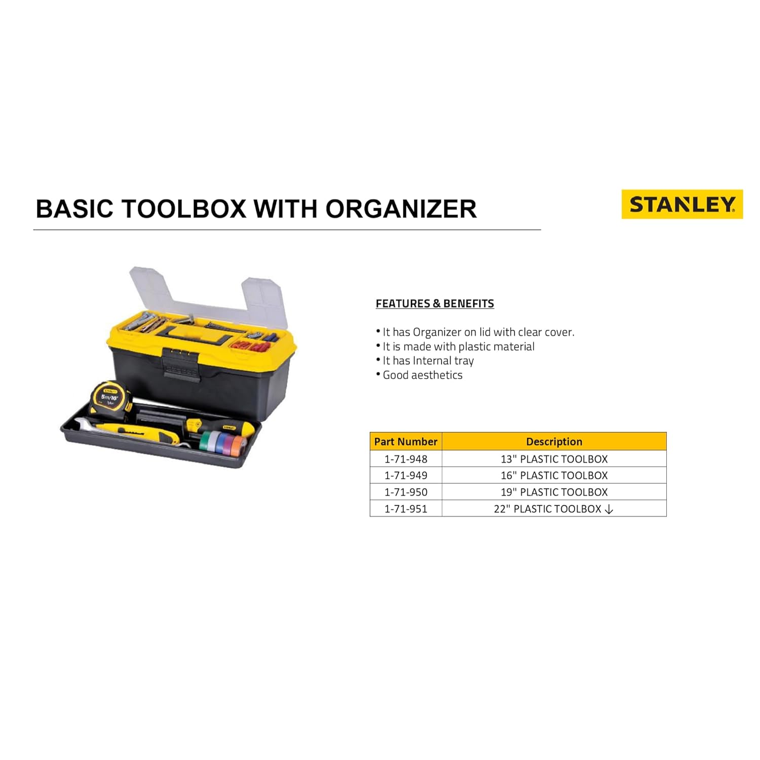 STANLEY has a reputation for excellence, reliability, and innovation. It manufactures high quality power tools that are engineered for precision and durability. This tool box is designed for heavy duty use. It helps in keeping all the essential tools organized for instant access. The portable box has a removable tray compartment and it is made with heavy duty plastic.