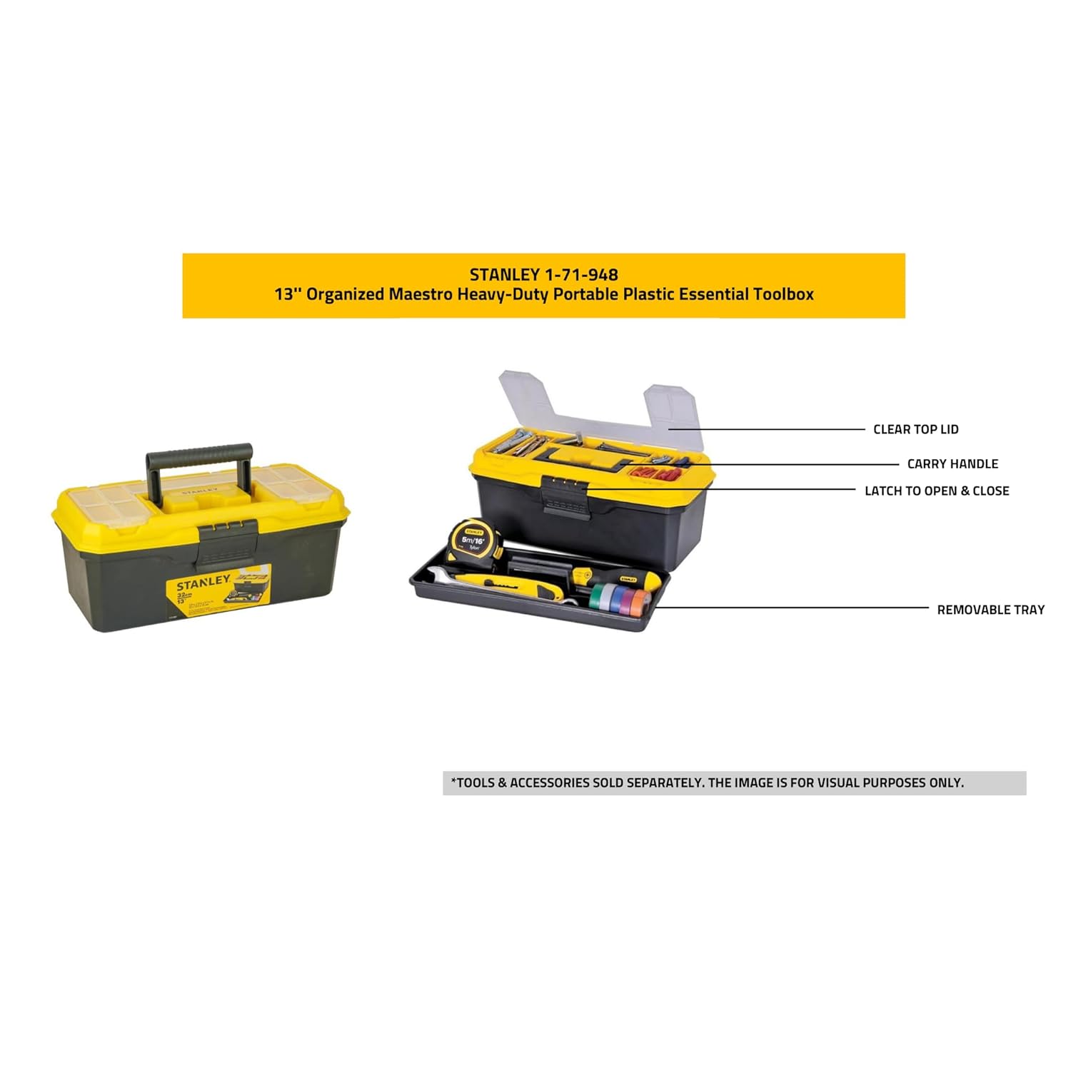 Be the first to review “STANLEY 1-71-948 13” Organized Maestro Heavy-Duty Portable Plastic Essential Toolbox With Clear Top Lid & Removable Tray Compartment For Easy & Convenient Storage,1 Year Warranty,YELLOW,32×13.5×15 cm”