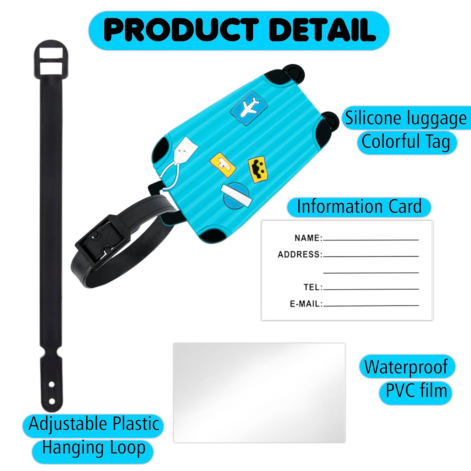 Colourful Luggage Tags Set: Travel luggage tags are made of soft durable Silicone material, soft and comfortable, and can avoid wearing the suitcase.