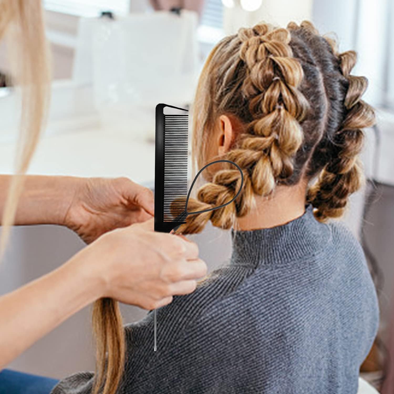 What You Get: These pink hair loop styling tool set includes 2pcs Topsy Tail Hair Tools pony tail hair tool, french braid tool loop,1pcs hair brush, bristle hair brush,1pack double-sided edge brush,and 1pcs carbon fiber heat resistant rat tail combs. you will have a nice combination set for your hair care.They are suitable for combing bangs, hairlines, hair edge, eyebrows and eyelashes, back hair, or parting hair.