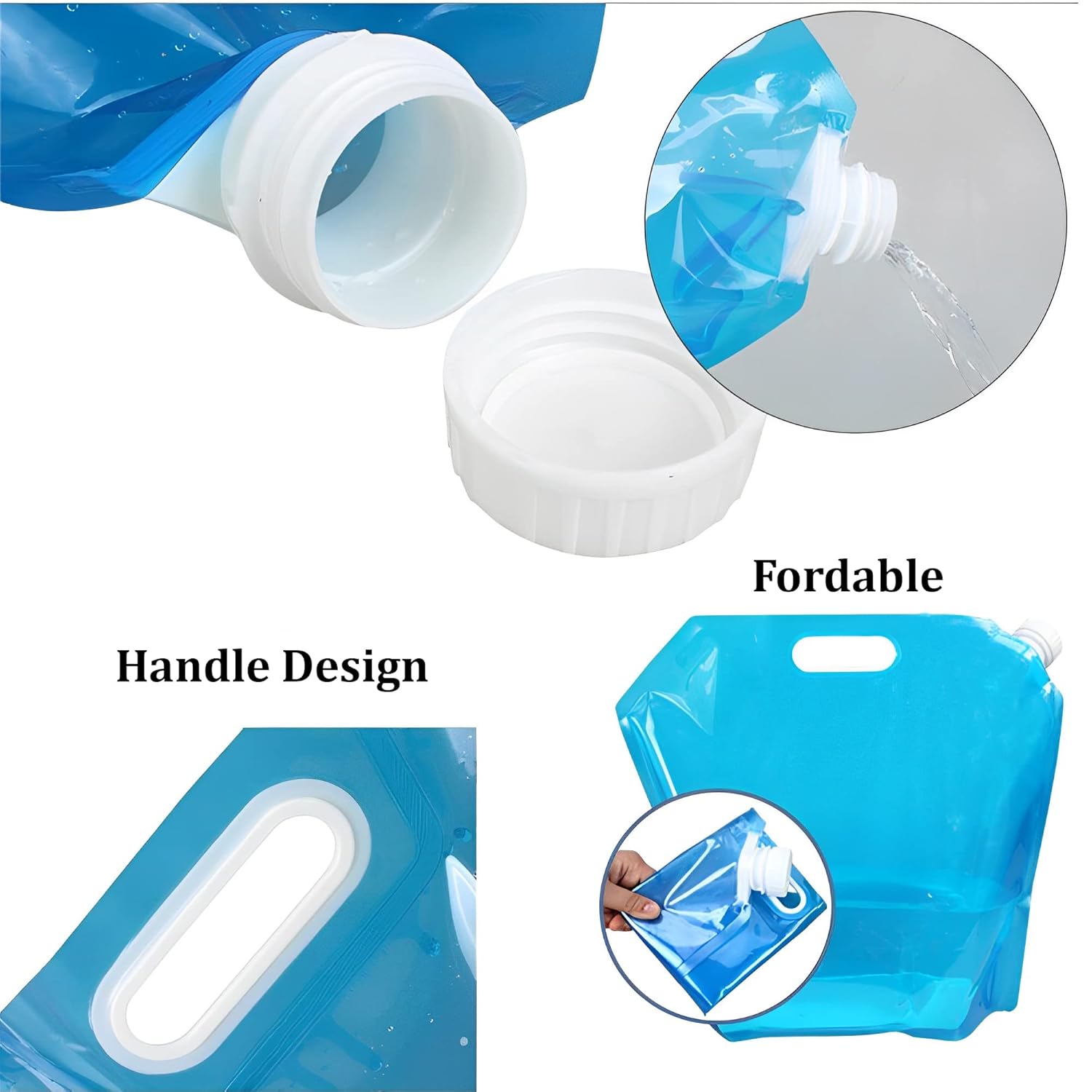 Innovative designs: Unlike ordinary water bag, the large screw-on cap provides a leak-proof seal, the large bottble opening for easy filling and pouring.