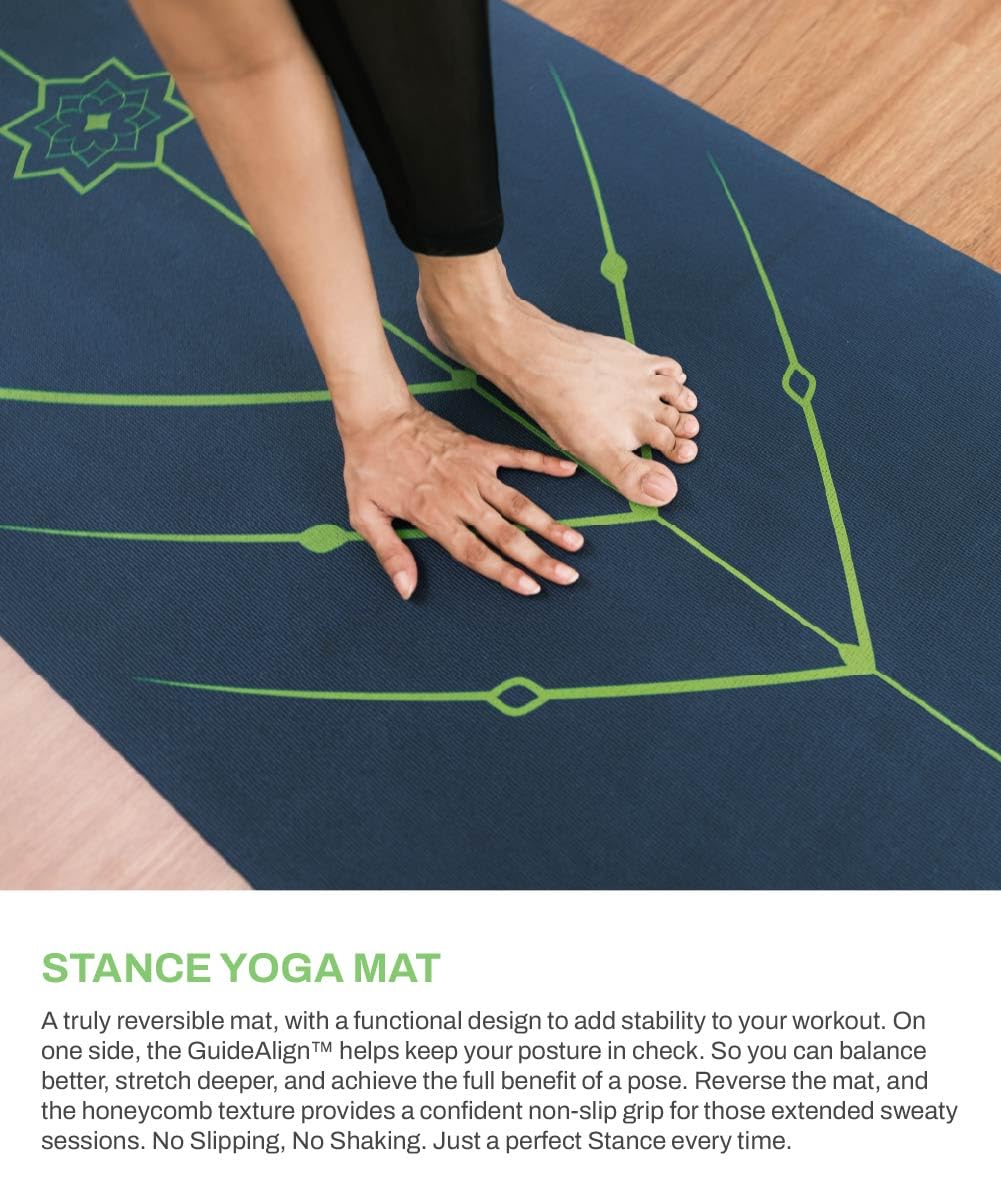 TEGO Stance Yoga Mat with GuideAlign for Posture Alignment (Blue Green Without Bag) | Reversible Design with Dual Texture Grip | 5mm Thick | Antimicrobial, Non-Slip, Sweat-Resistant | 6ft x 2ft | Yoga & Fitness Mat | Shoe-friendly Workout Mat