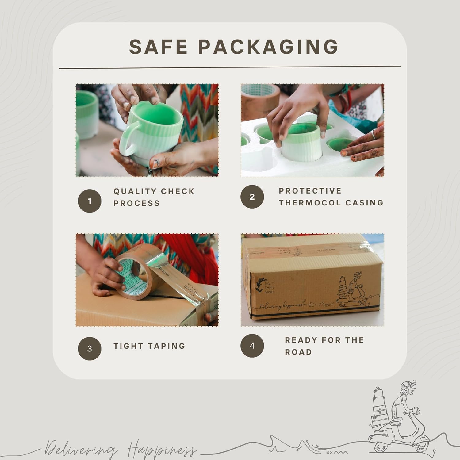 Has a good grip while sipping tea, coffee, milk, soup, other beverages, etc.,