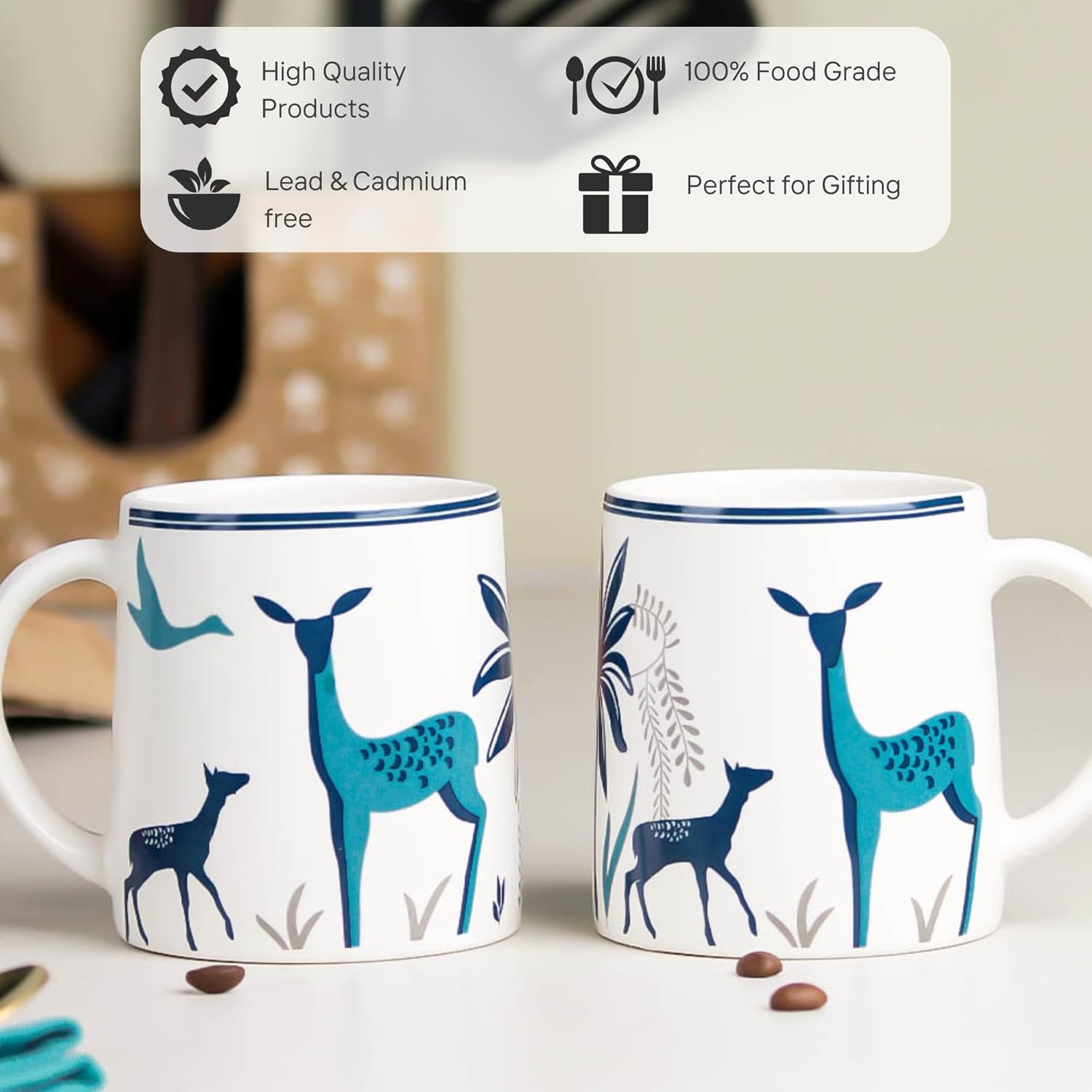 Be the first to review “The Earth Store Stag Blue Coffee Mugs Set of 2 to Gift to Best Friends, Coffee Mugs, Microwave Safe Ceramic Mugs,(300 ml Each)”