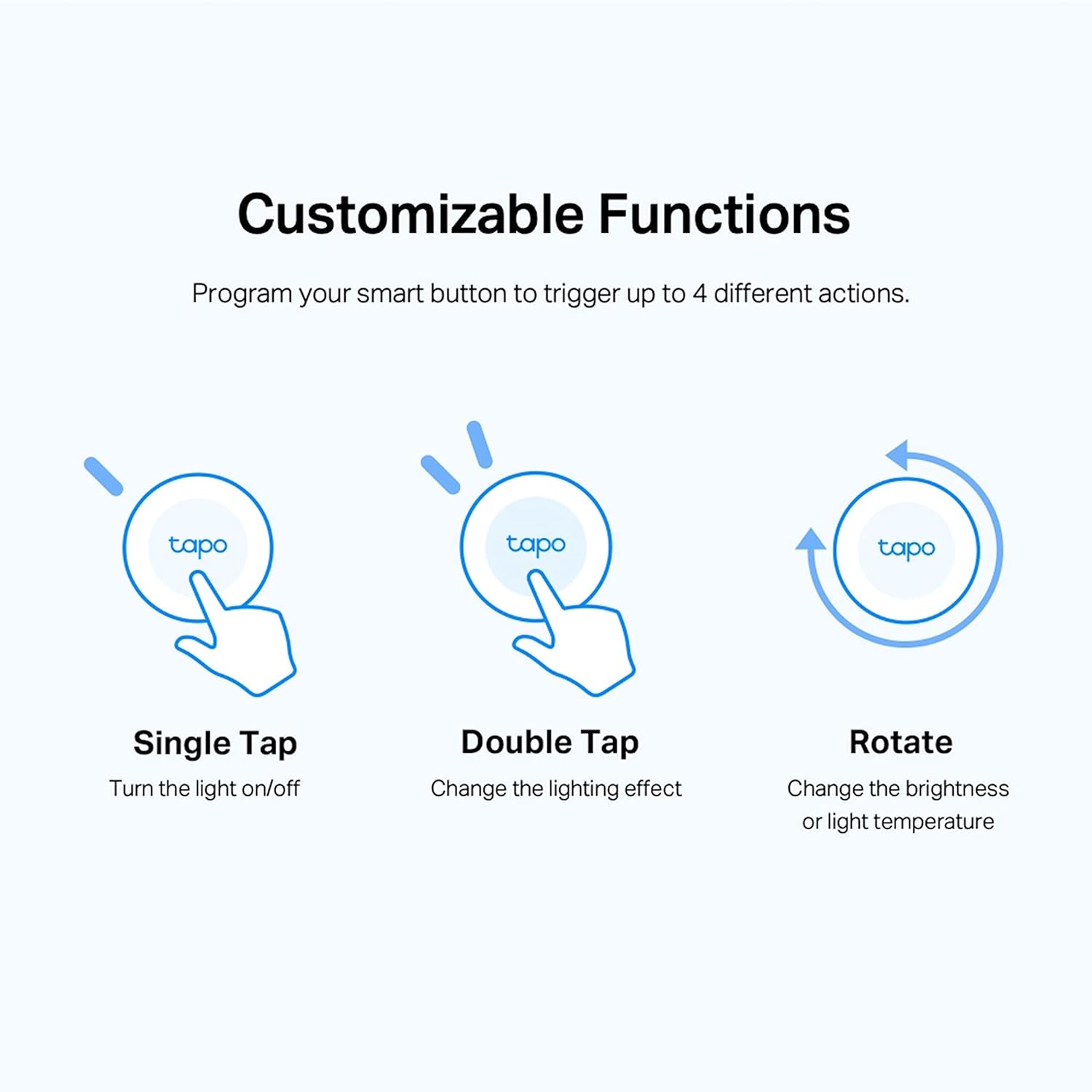 Smart Actions – Control and set multiple lights, electronics, and other Tapo smart devices with the button.
