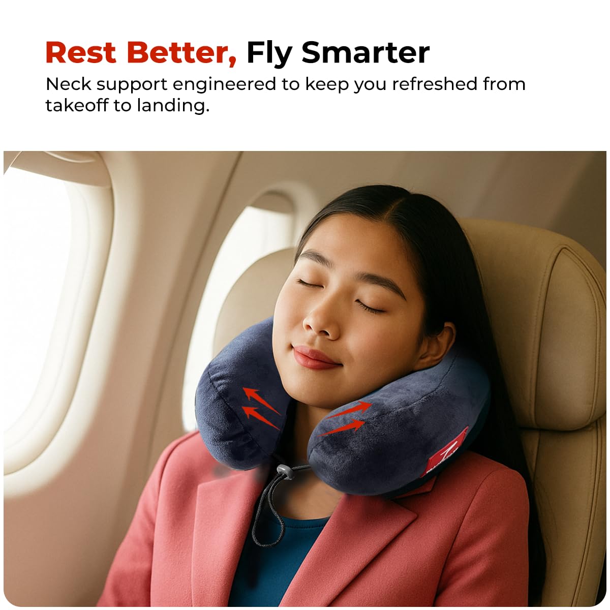 PREMIUM HOLLOW CONJUGATE FIBER FILLING – Experience luxurious softness and superior neck support with our high-resilience hollow conjugate fiber filling, engineered for long-lasting durability, plush comfort, and perfect head support during long journeys.