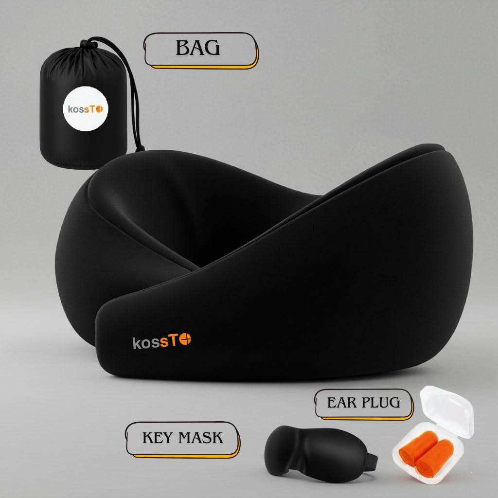 Experience ultimate comfort on your next journey with Kossto Memory Foam Travel Pillow. Whether you’re flying long hours or driving on a road trip, this pillow is designed to provide neck pain relief, promote better sleep, and enhance your travel experience. The ergonomic design ensures support and comfort while the soft memory foam adapts to your neck shape, offering perfect cushioning. Our travel pillow also comes with a sleeping eye mask and noise-isolating ear plugs for the complete travel package. It’s lightweight, compact, and portable—ideal for men & women on the go. Say goodbye to travel discomfort and hello to restful sleep!