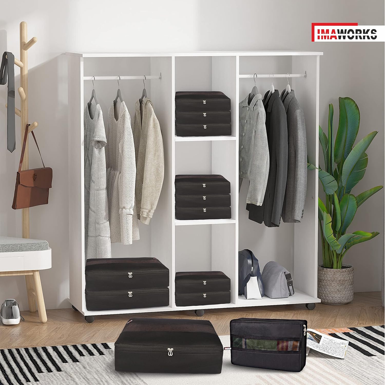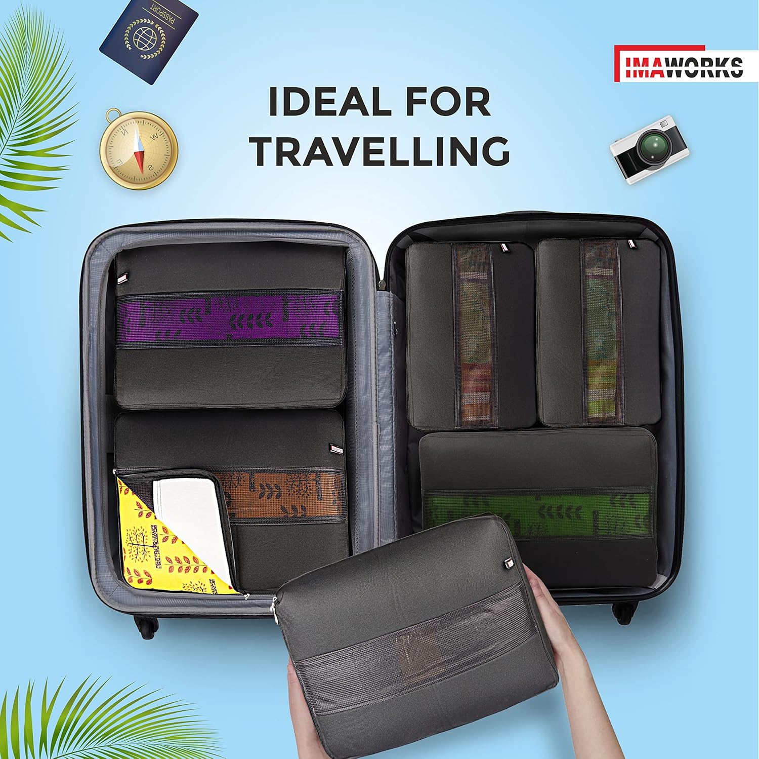 Set includes : large (45 x 32 x 11 CM), medium (40 x 26 x 11 CM), small (35 x 24 x 11 CM) IMAWORKS packing cube