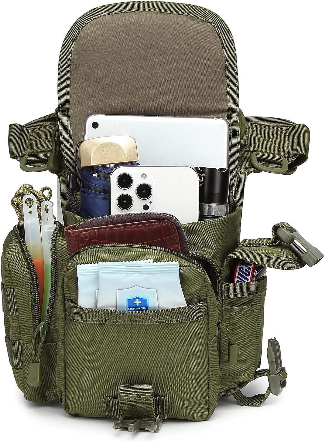 Adjustable straps provide a snug fit around your waist and thigh, ensuring the bag stays put during physical activity. With a tactical MOLLE system, you can fully customize the pack with compatible accessories.