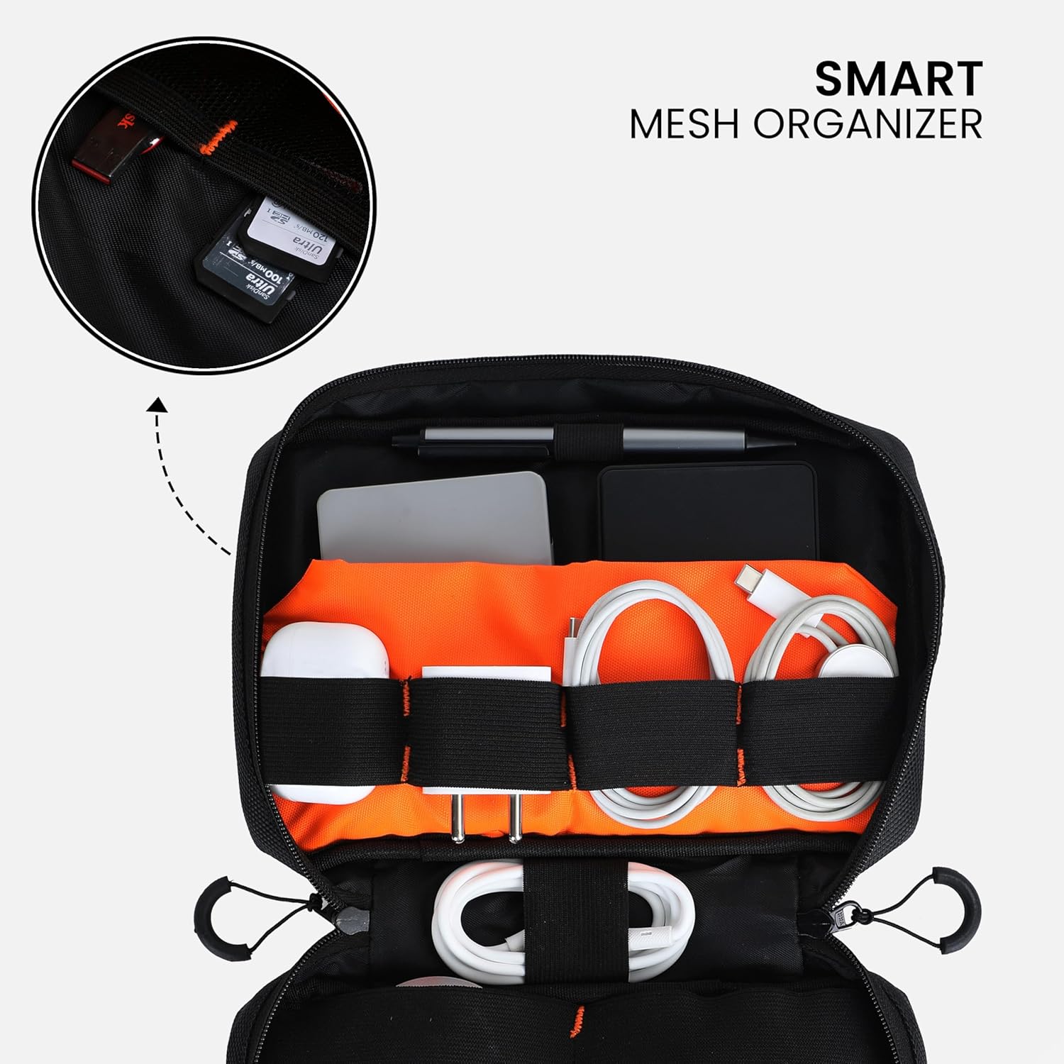 Designed for your tiny essentials, the Tech Pouch Pro’s mesh pocket keeps SD cards, pen drives, SIM cards, coins, and other small items safely in place and easy to access when you need them.