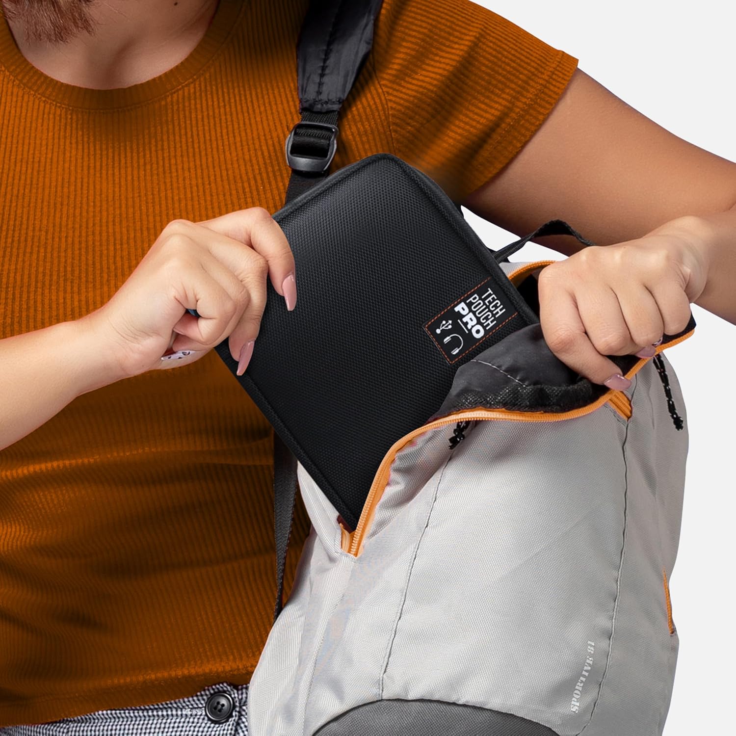 The Tech Pouch Pro has a dedicated spot for everything—chargers, cables, hard drives, pens, and more—so you never waste time digging around. Stay neat, organized, and ready to go.